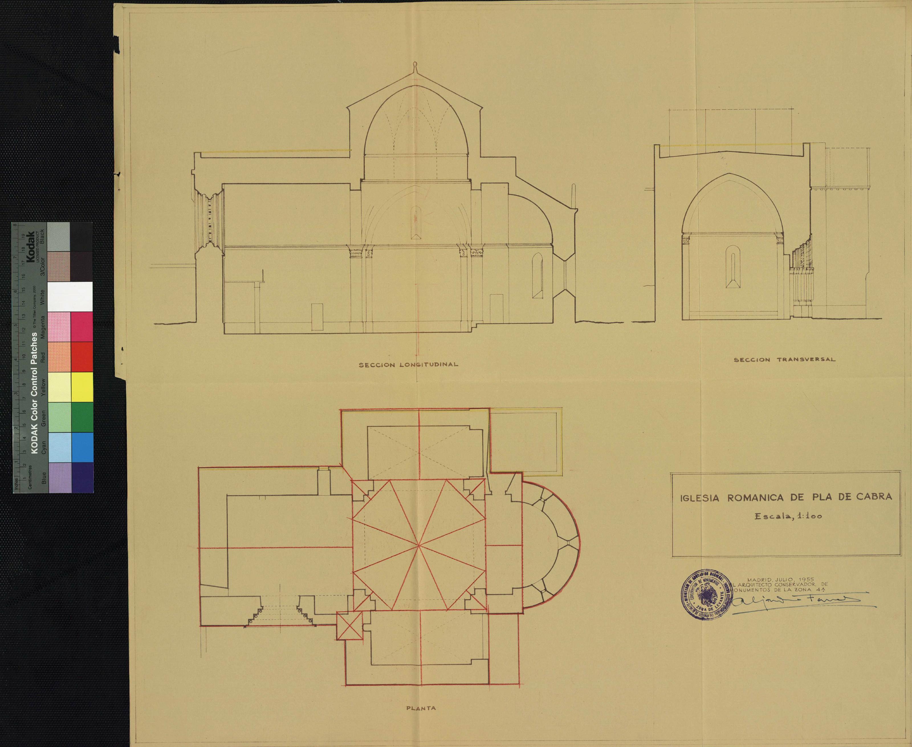 IGLESIA ROMANICA DE SAN RAMON: SECCION LOGINTUDINAL, TRANSVERSAL Y PLANTA