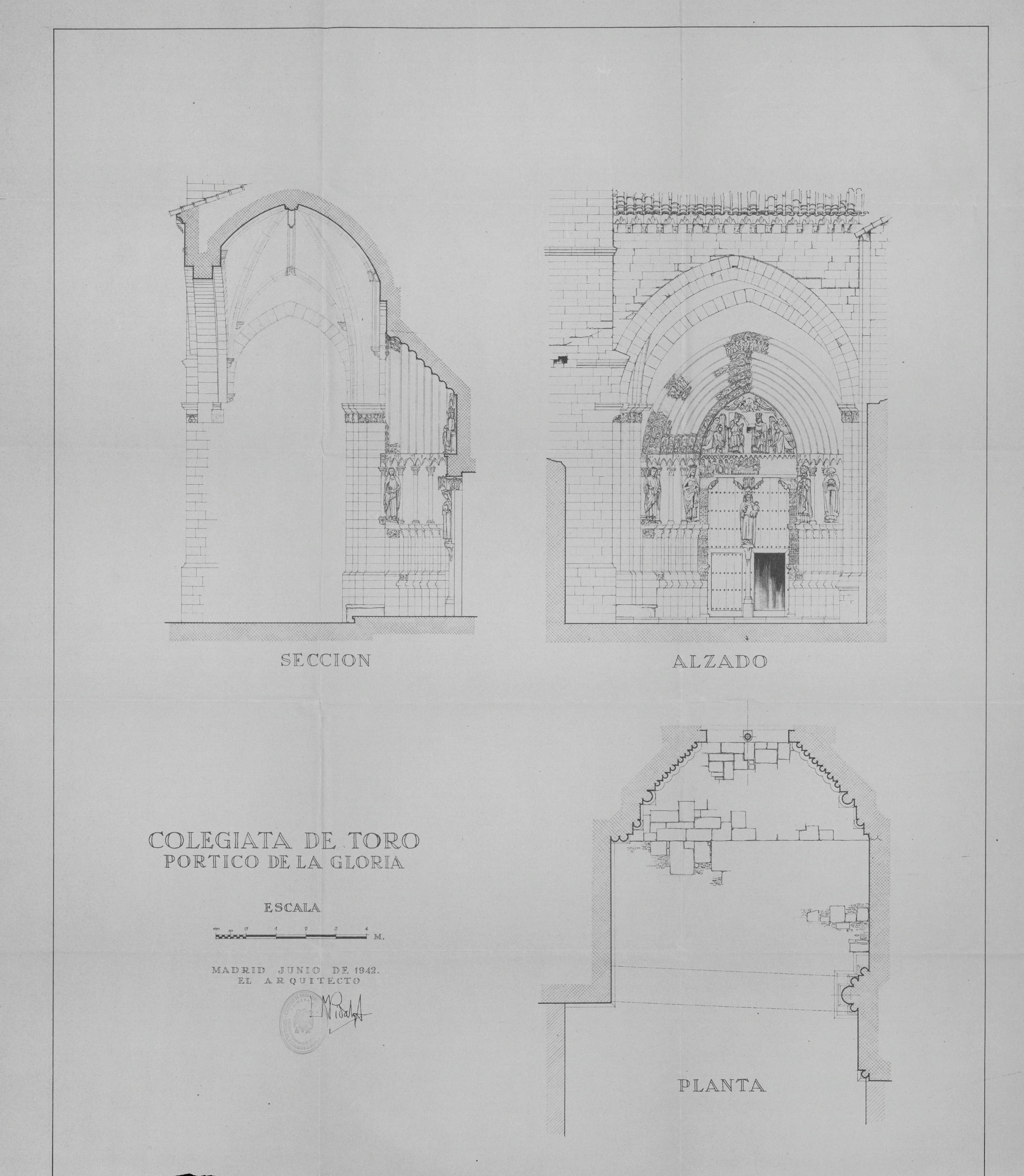 COLEGIATA DE TORO "PORTICO DE LA GLORIA": PLANTA, ALZADO Y SECCION