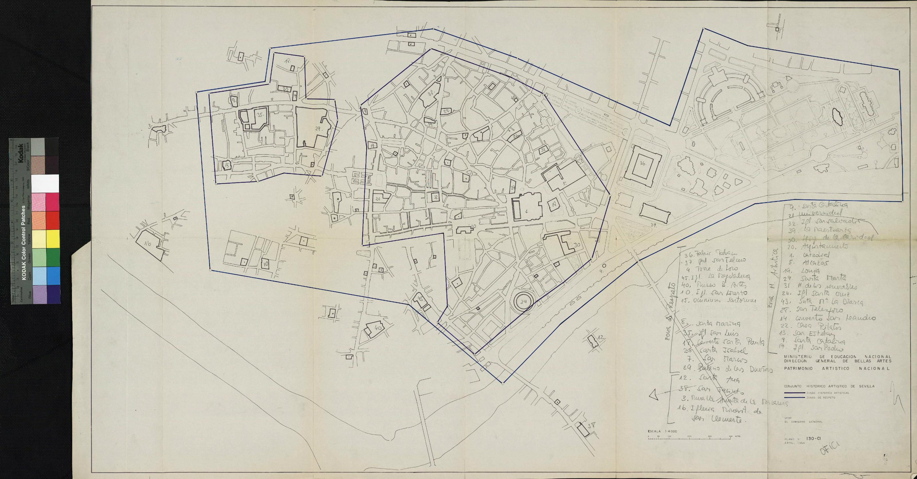 Conjunto Histórico Artístico de Sevilla: Conjunto Histórico Artístico de la ciudad de Sevilla Delimitación y leyenda de monumentos en el perímetro