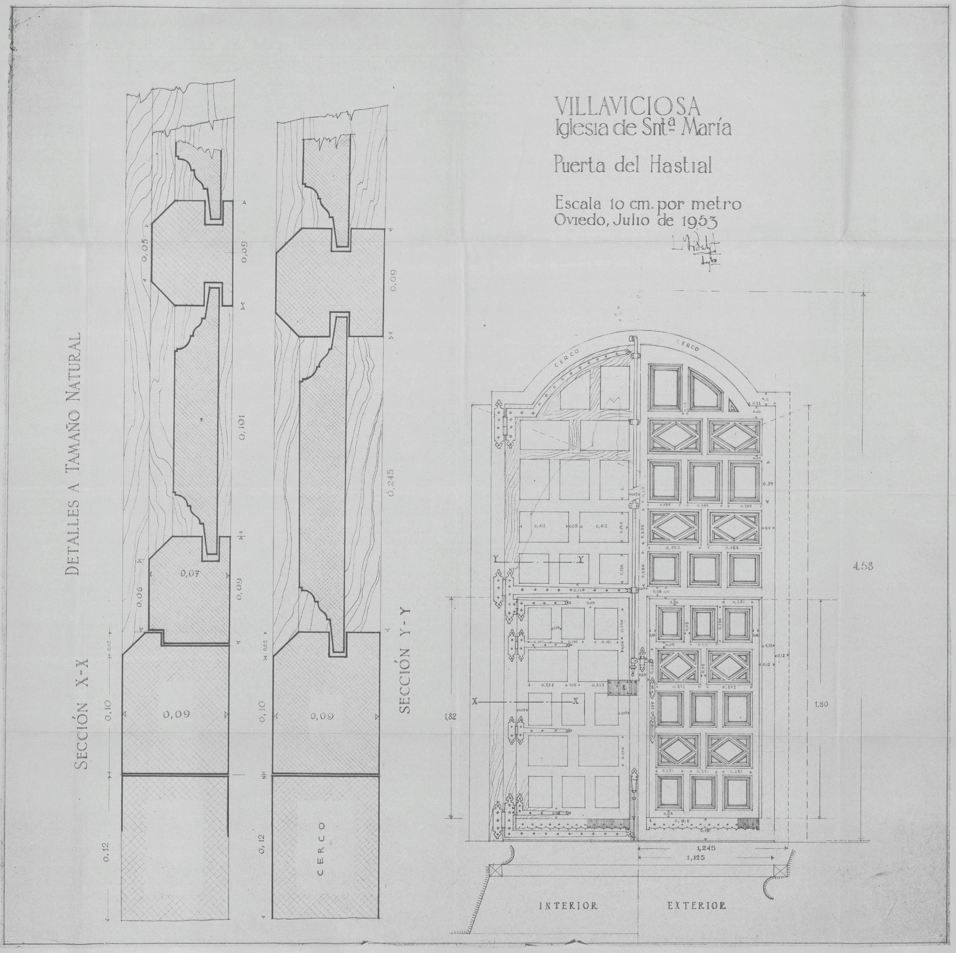 Iglesia de Santa Maria - Villaviciosa - (Oviedo ) -Puerta del Astial-: Planta y Alzado Interior Planta y Alzado Exterior Sección X-X (Detalle a tamaño natural) Sección Y-Y (Detalle a tamaño natural)