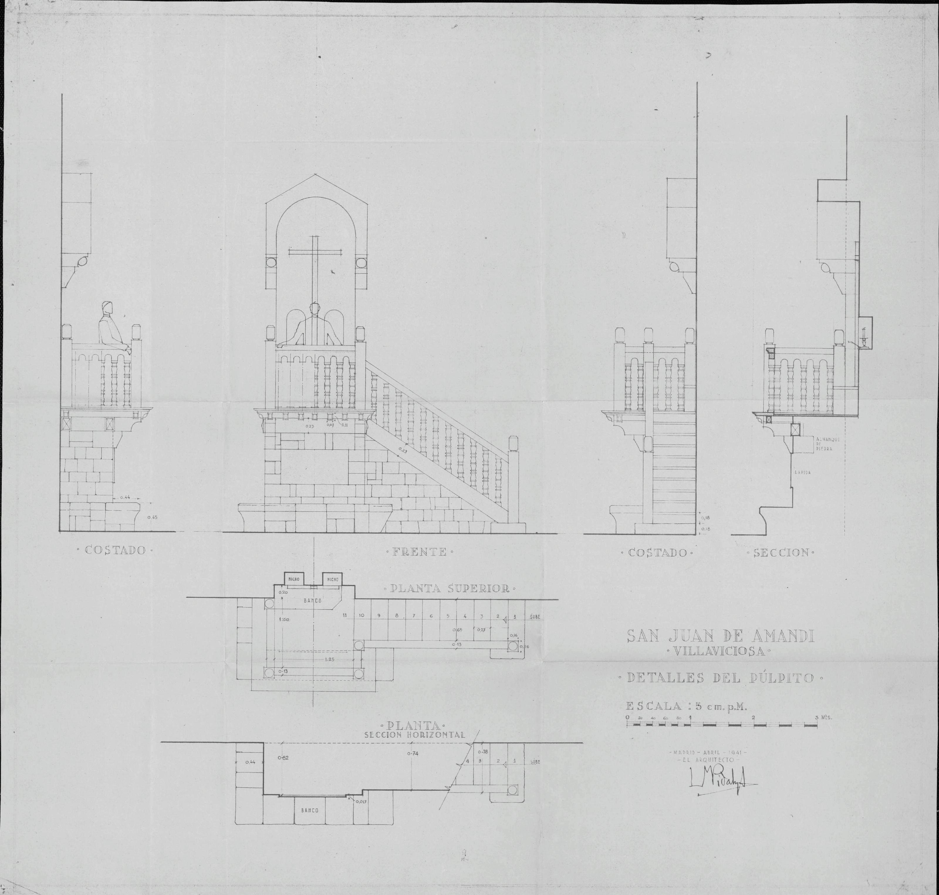 Iglesia de San Juan de Amandi - Villaviciosa - (Oviedo ) -Detales del Pulpito-: Costados Frentes Planta (Sección Horizontal) Planta Superior