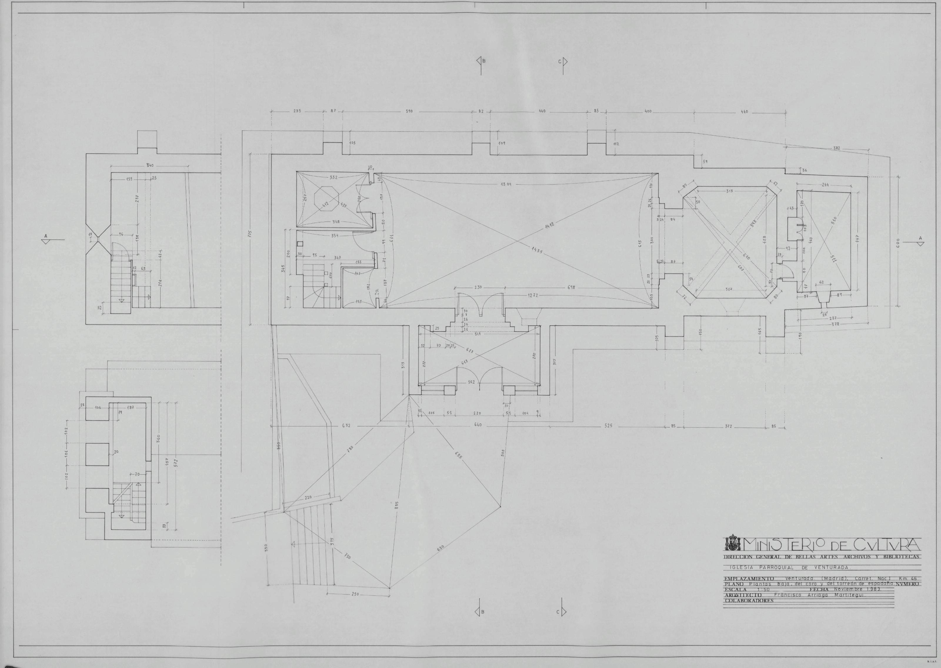 IGLESIA PARROQUIAL DE VENTURADA: PLANTAS BAJA, DEL CORO Y DEL TORREON DE ESPADAÑA -COTAS