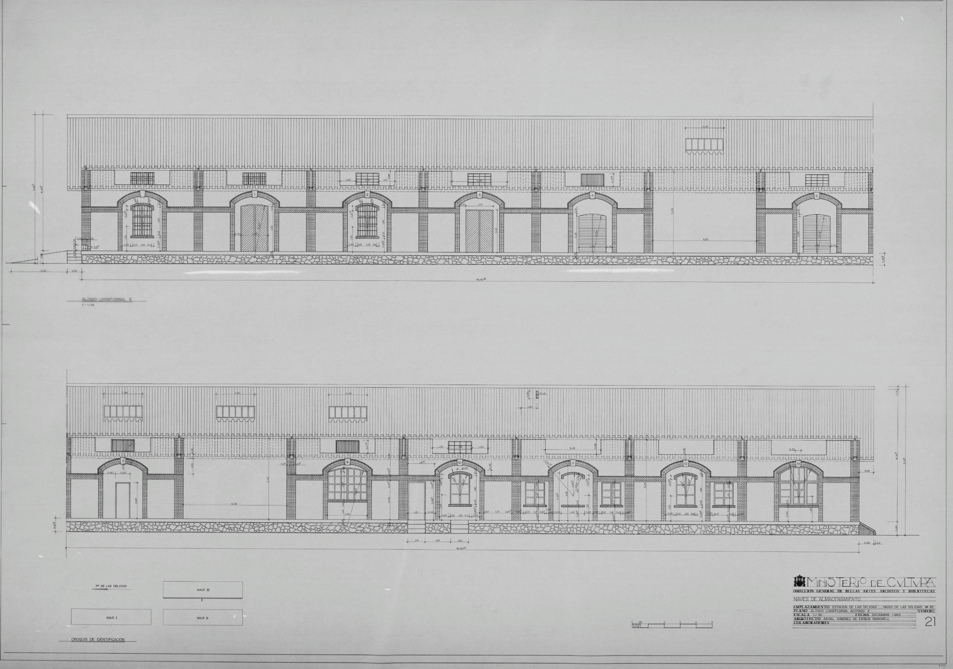 ESTACION DE LAS DELICIAS - NAVES DE ALMACENAMIENTO: ALZADO LONGITUDINAL -E -ACOTADO