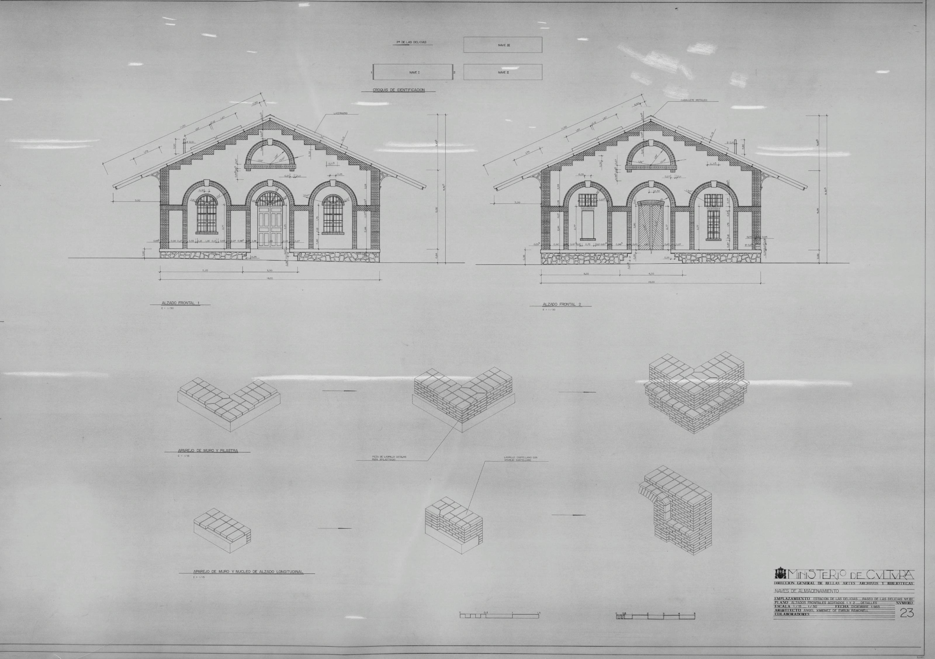 ESTACION DE LAS DELICIAS - NAVES DE ALMACENAMIENTO: ALZADOS FRONTALES ACOTADOS 1-2 -DETALLES