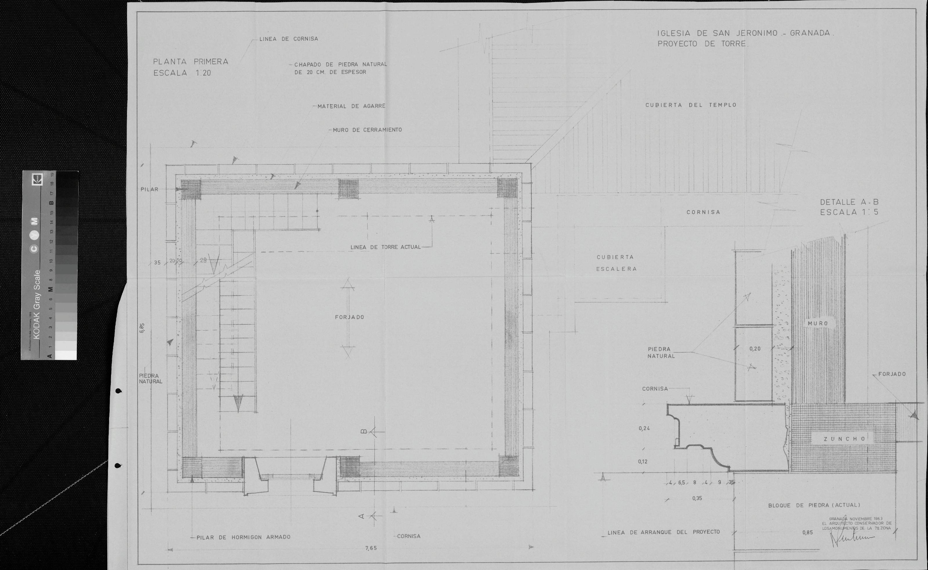 Iglesia de San Jerónimo: Iglesia de San Jerónimo Proyecto de nueva torre - Planta primera (proyecto) Detalle A-B (Escala 1:5)