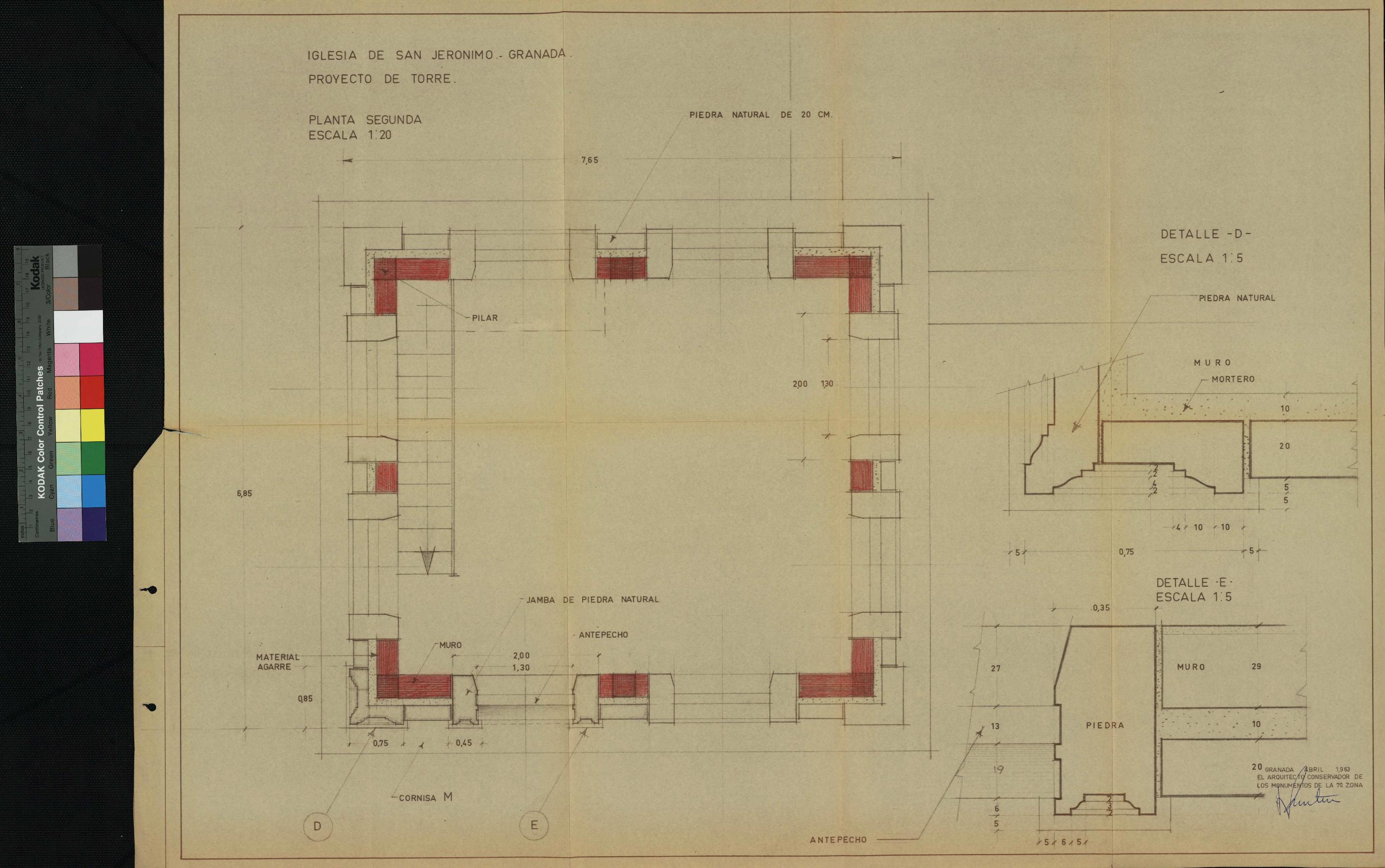 Iglesia de San Jerónimo: Iglesia de San Jerónimo Proyecto de nueva torre - Planta segunda Detalles D y E (Escala 1:5)