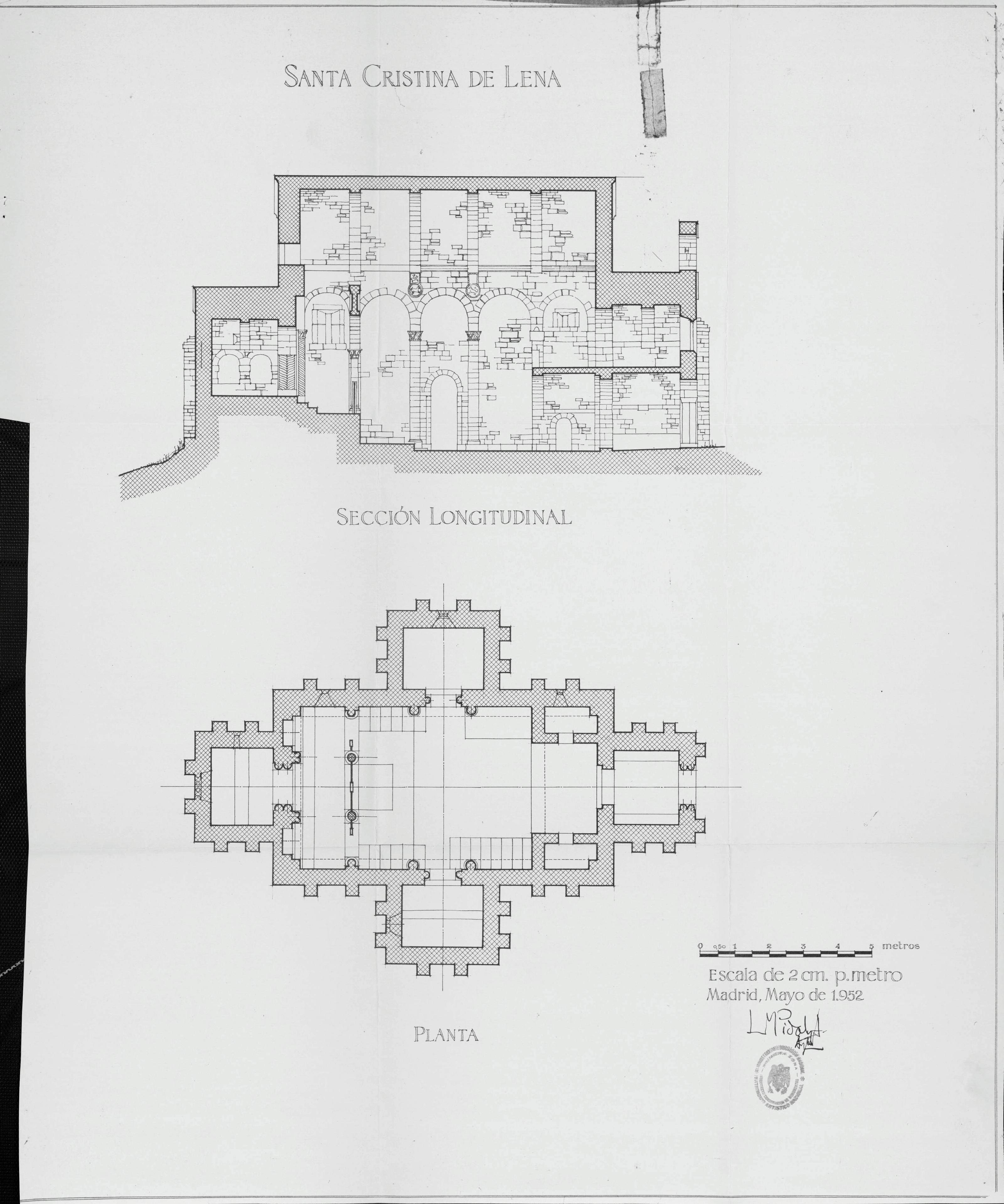 Colegiata de Santa Cristina de Lena -Asturias-: Planta Sección Longiyudinal