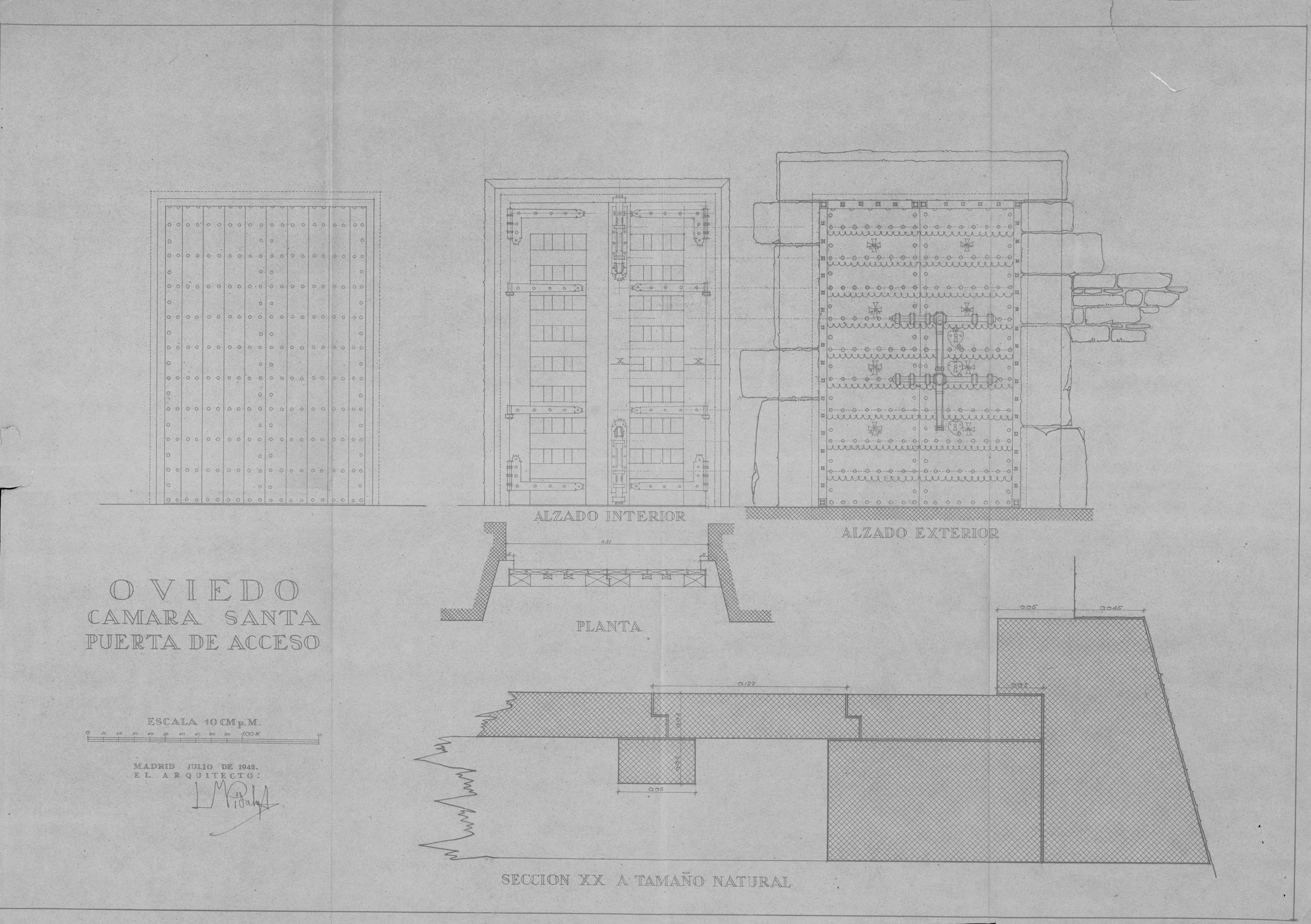 Oviedo Camara Santa -Puerta de Acceso-: Planta Alzado Interior Alzado Exterior Sección xx a Tamaño natural
