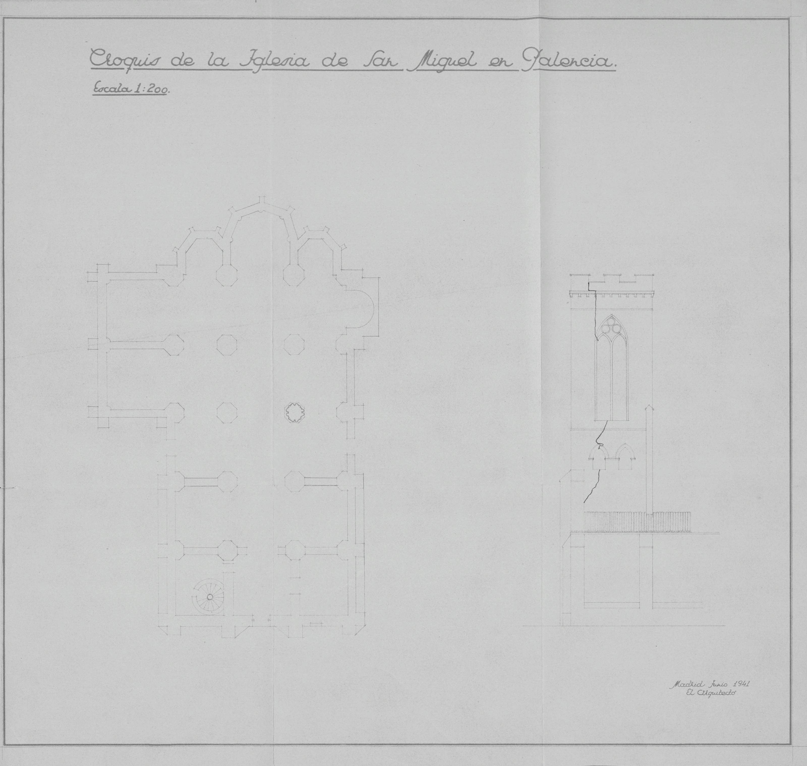 Iglesia de San Miguel. Palencia.: Croquis de la planta general y alzado parcial de la Iglesia.