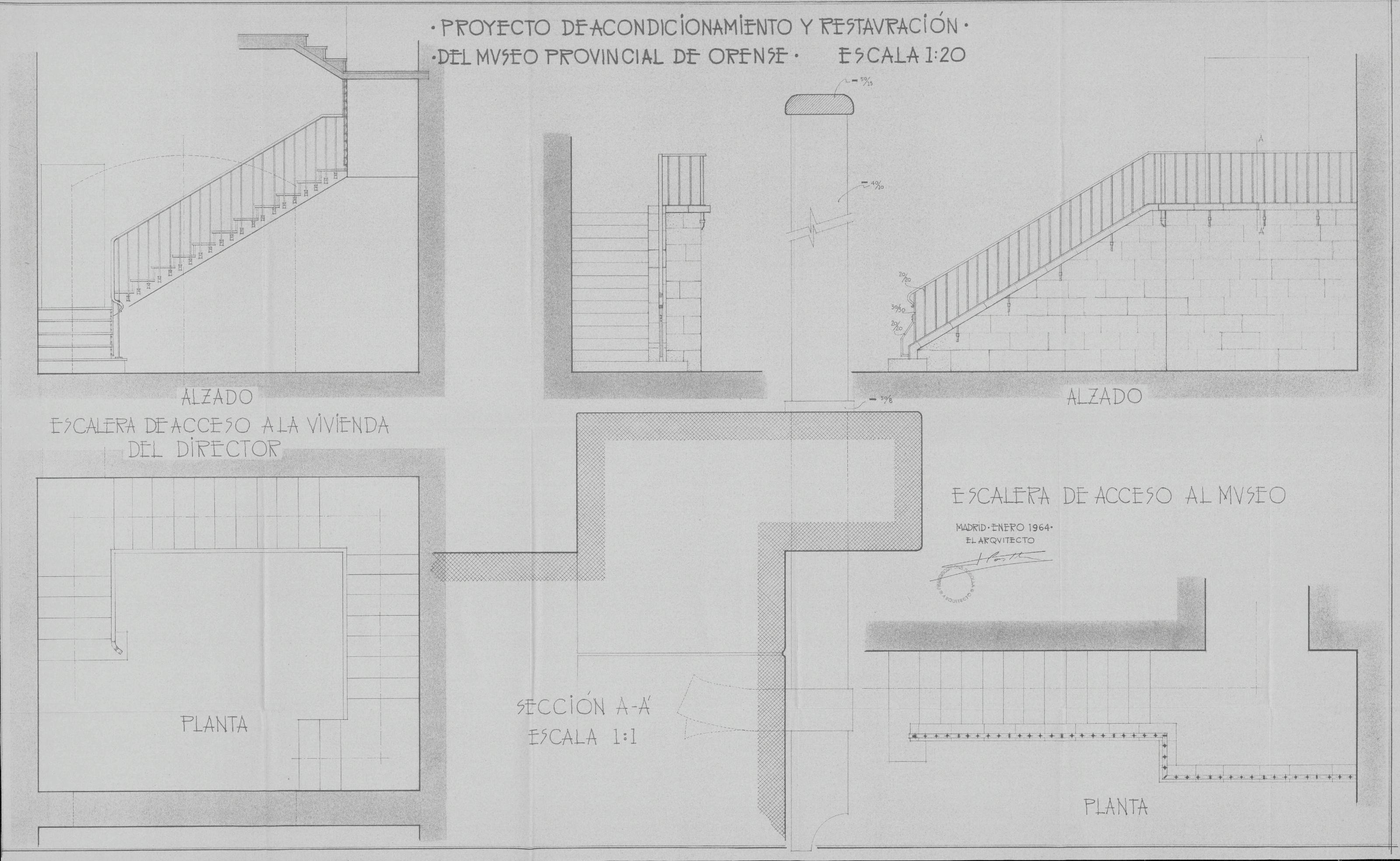 Museo Provincial (Orense)-Detalle Nueva Escalera-: PlantasAlzadosSecciónes