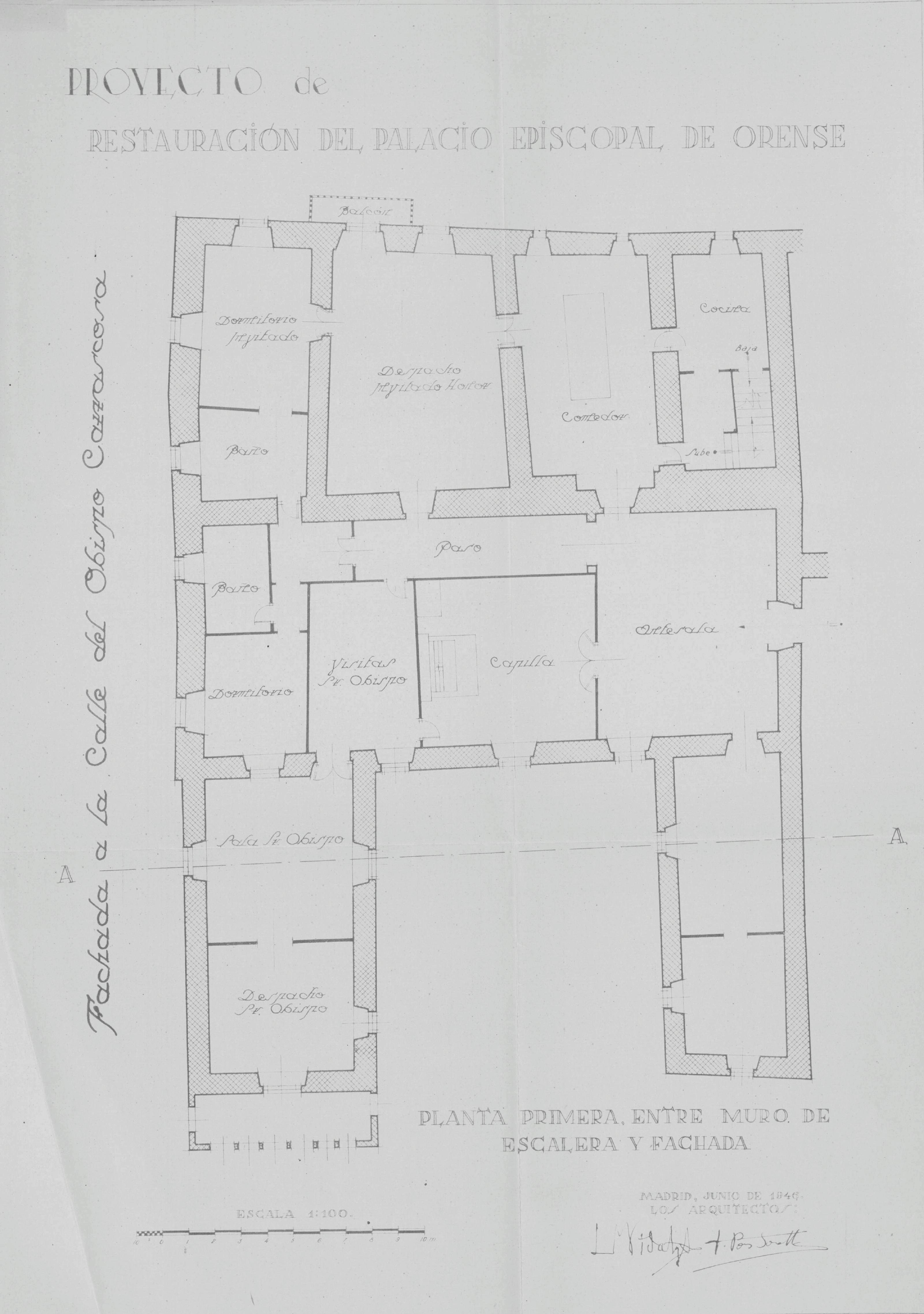 Palacio Episcopal (Orense): Planta Primera entre Muro de Escalera Y Fachda