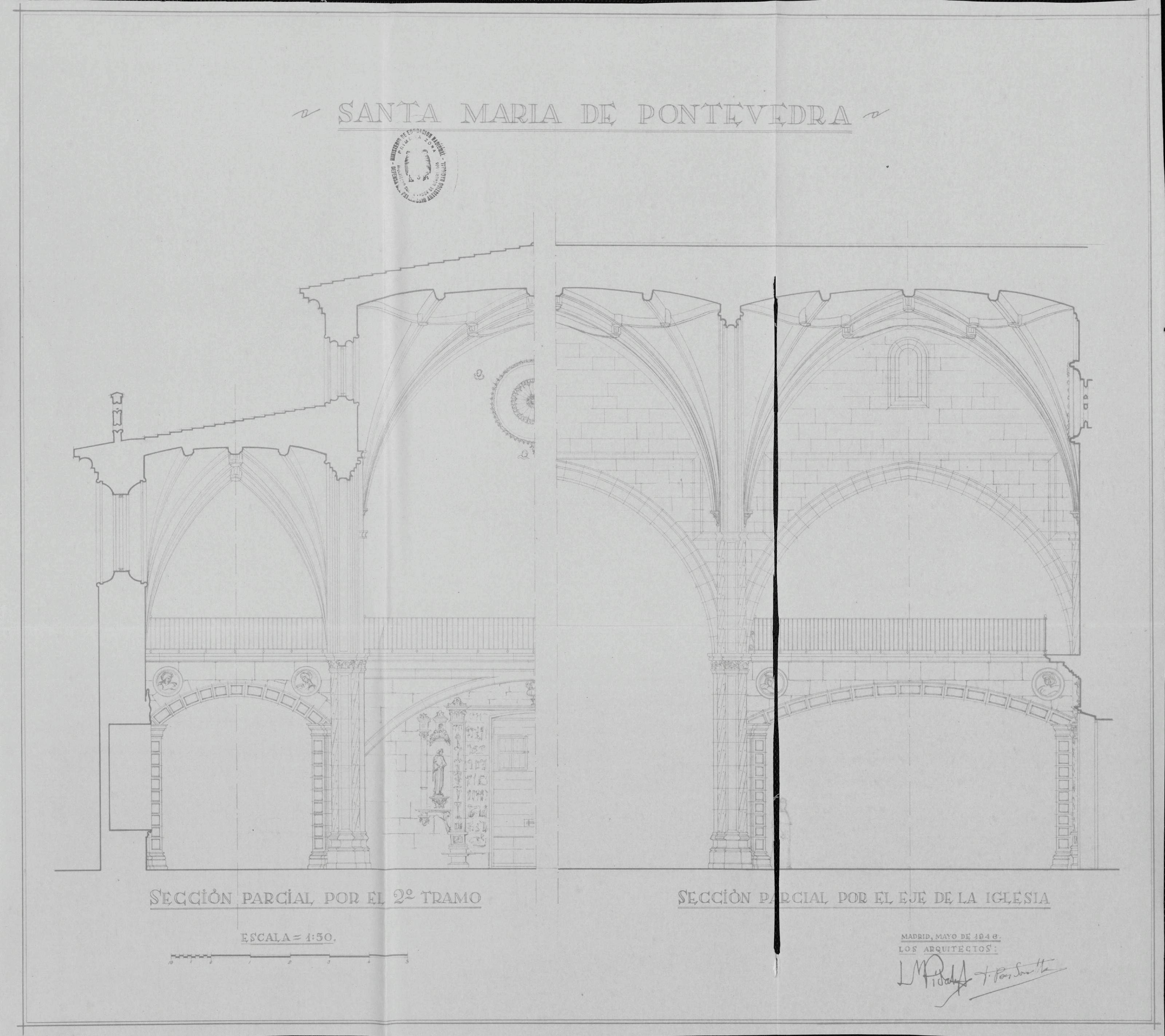 Iglesia de Santa María: Iglesia de Santa María Sección parcial por el segundo tramo Sección parcial por el eje de la iglesia