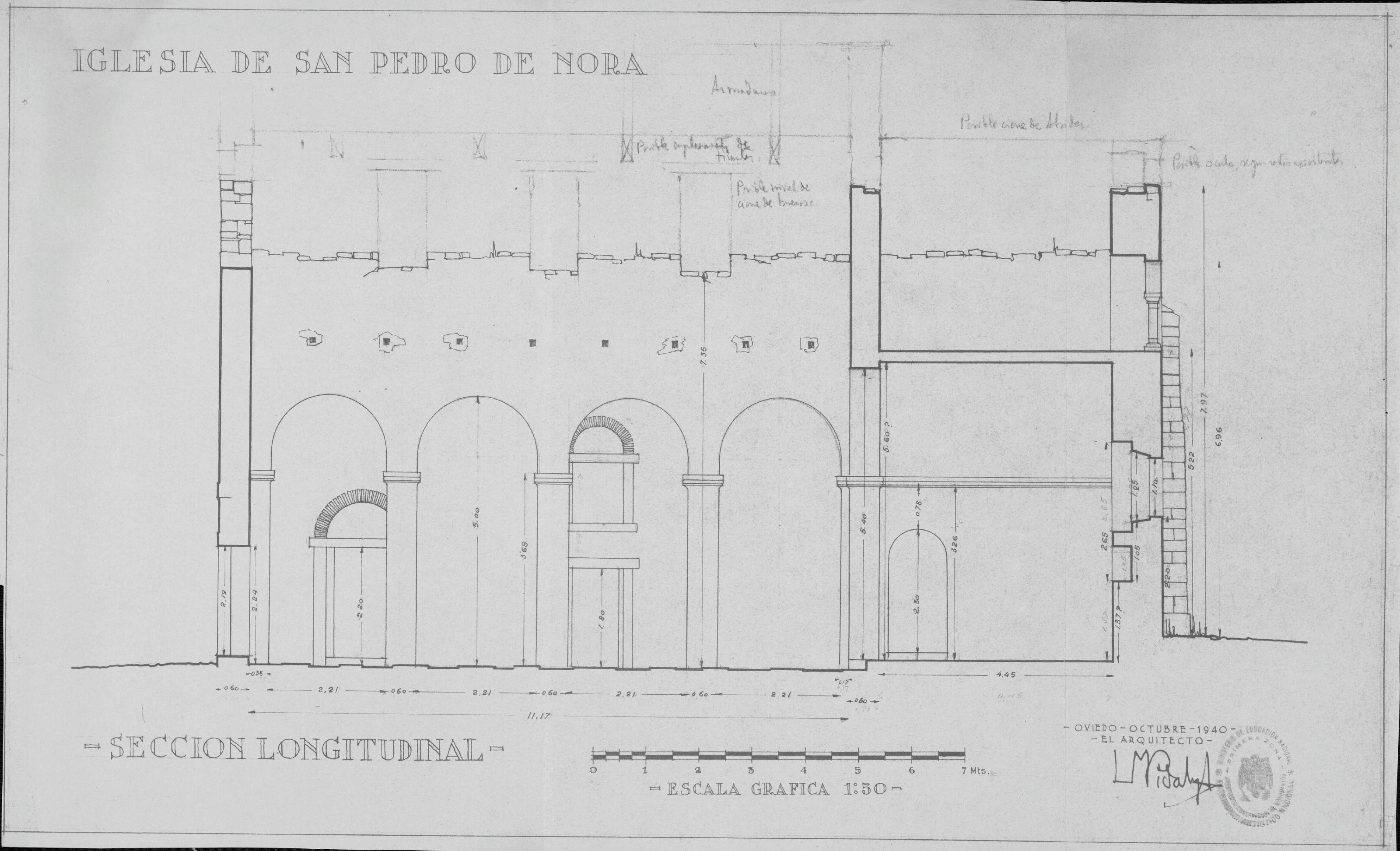 Iglesia de San Pedro de Nora - (Oviedo ): Sección Longitudinal