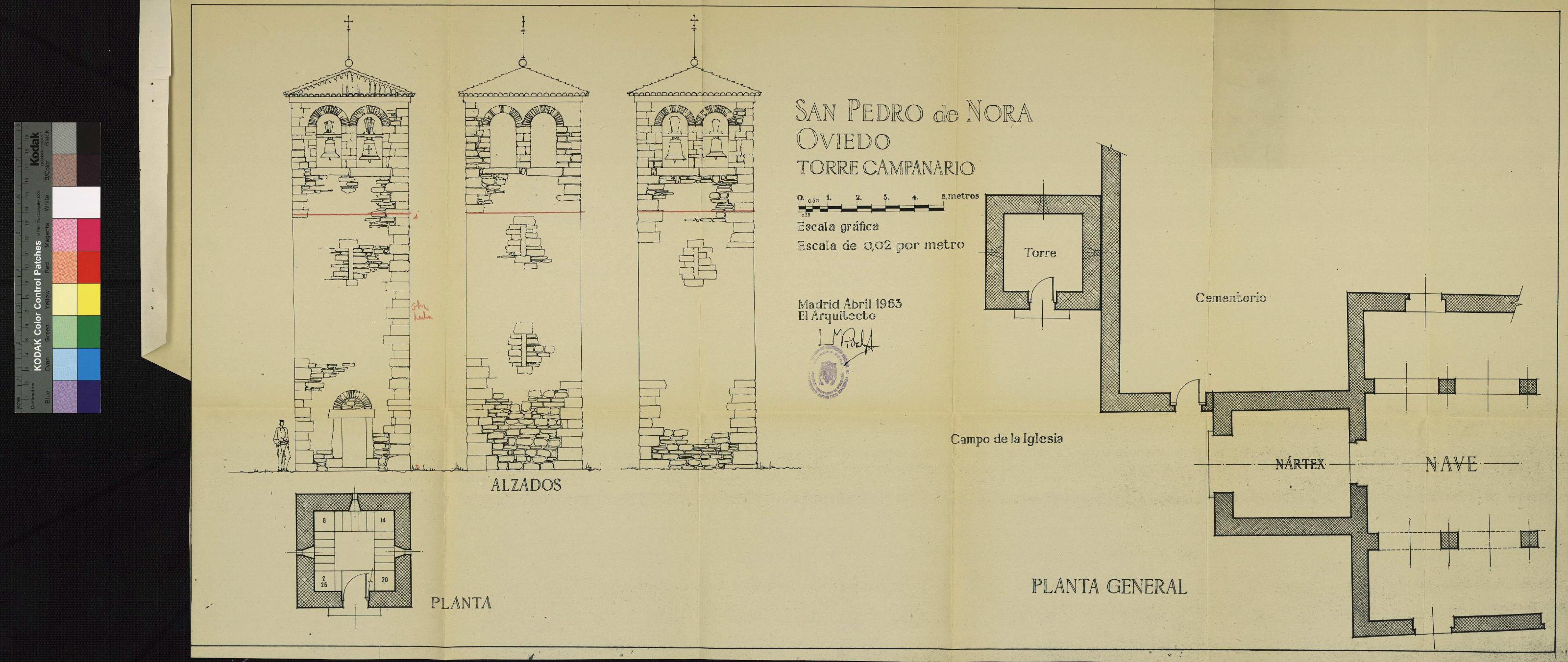 Iglesia de San Pedro de Nora - (Oviedo ) -Torre Campanario-: Planta General Planta Alzados