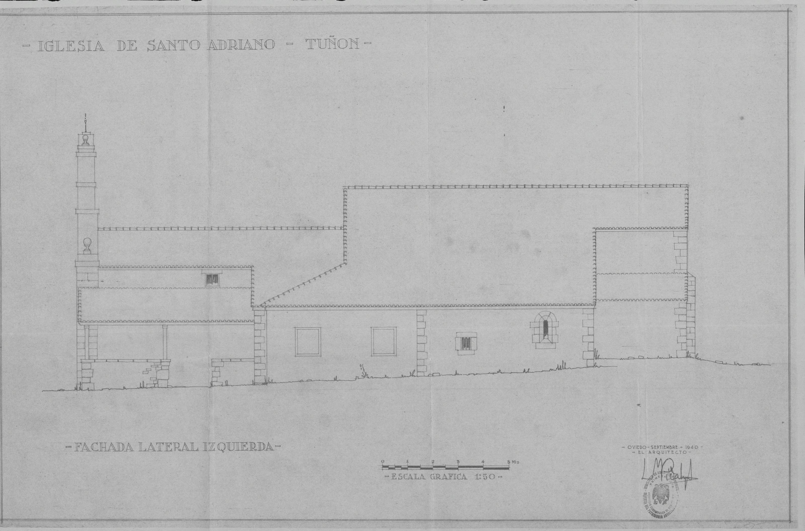 Iglesia de Santo Adriano -Tuñón - (Oviedo ): Fachada Lateral Izquierda