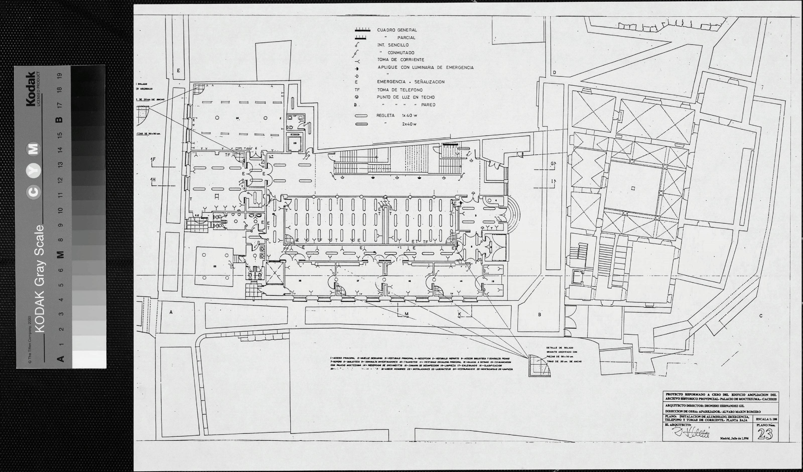 PALACIO DE MOCTEZUMA. ARCHIVO HISTORICO PROVINCIAL: PLANTA BAJA. INSTALACIONES DE ALUMBRADO, EMERGENCIA, TELEFONO, TOMAS DE CORRIENTE.