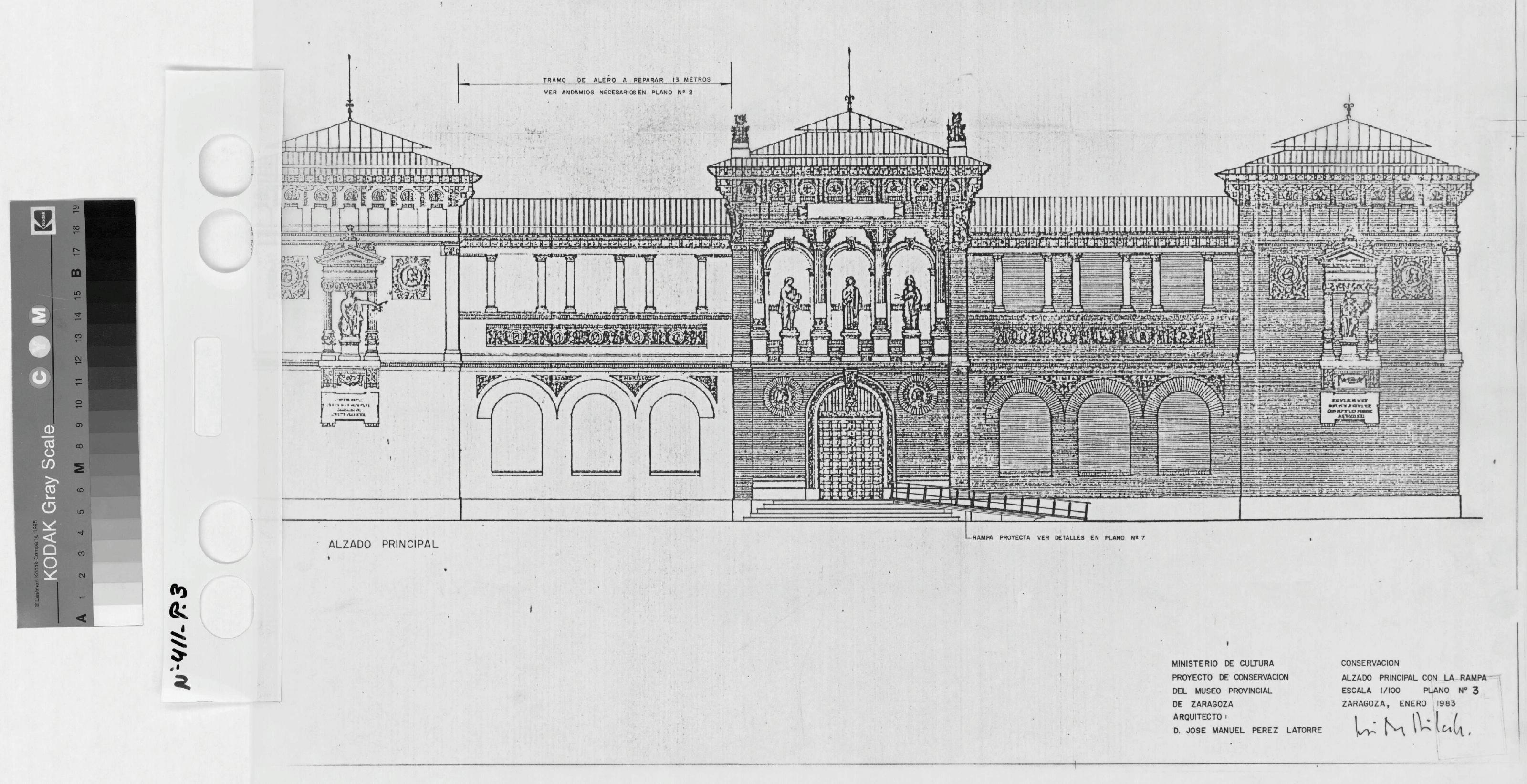 MUSEO PROVINCIAL DE ZARAGOZA: ALZADO PRINCIPAL CON LA RAMPA