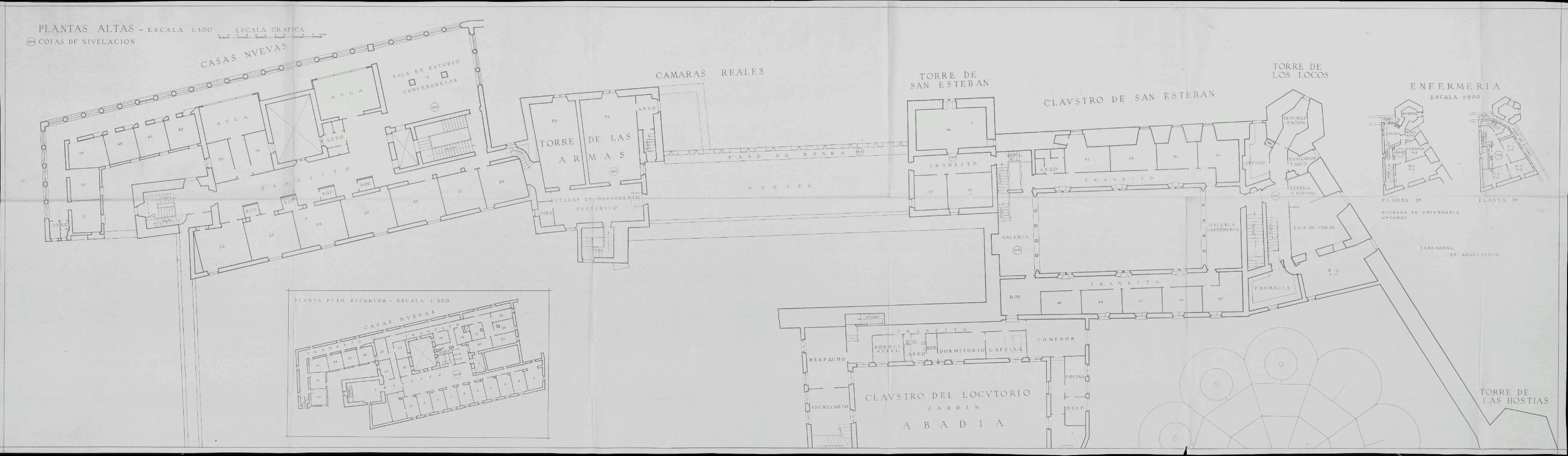 PALACIO DEL REY MARTIN EN EL MONASTERIO DE SANTA MARIA: PLANTAS ALTAS. COTAS DE NIVELACION