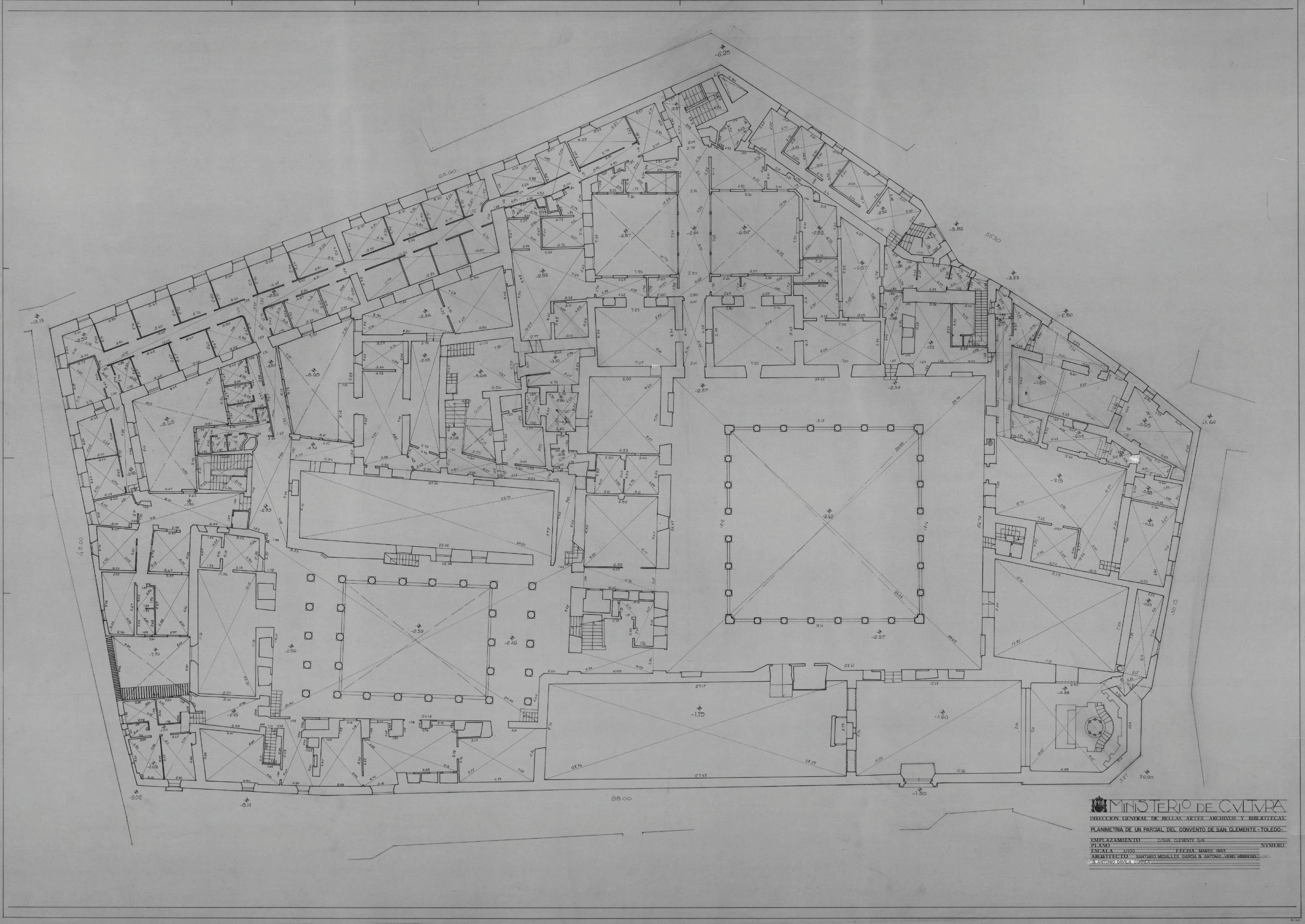 PLANIMETRIA DE UN PARCIAL DEL CONVENTO DE SAN CLEMENTE: PLANTA GENERAL COTAS Y MEDIDAS