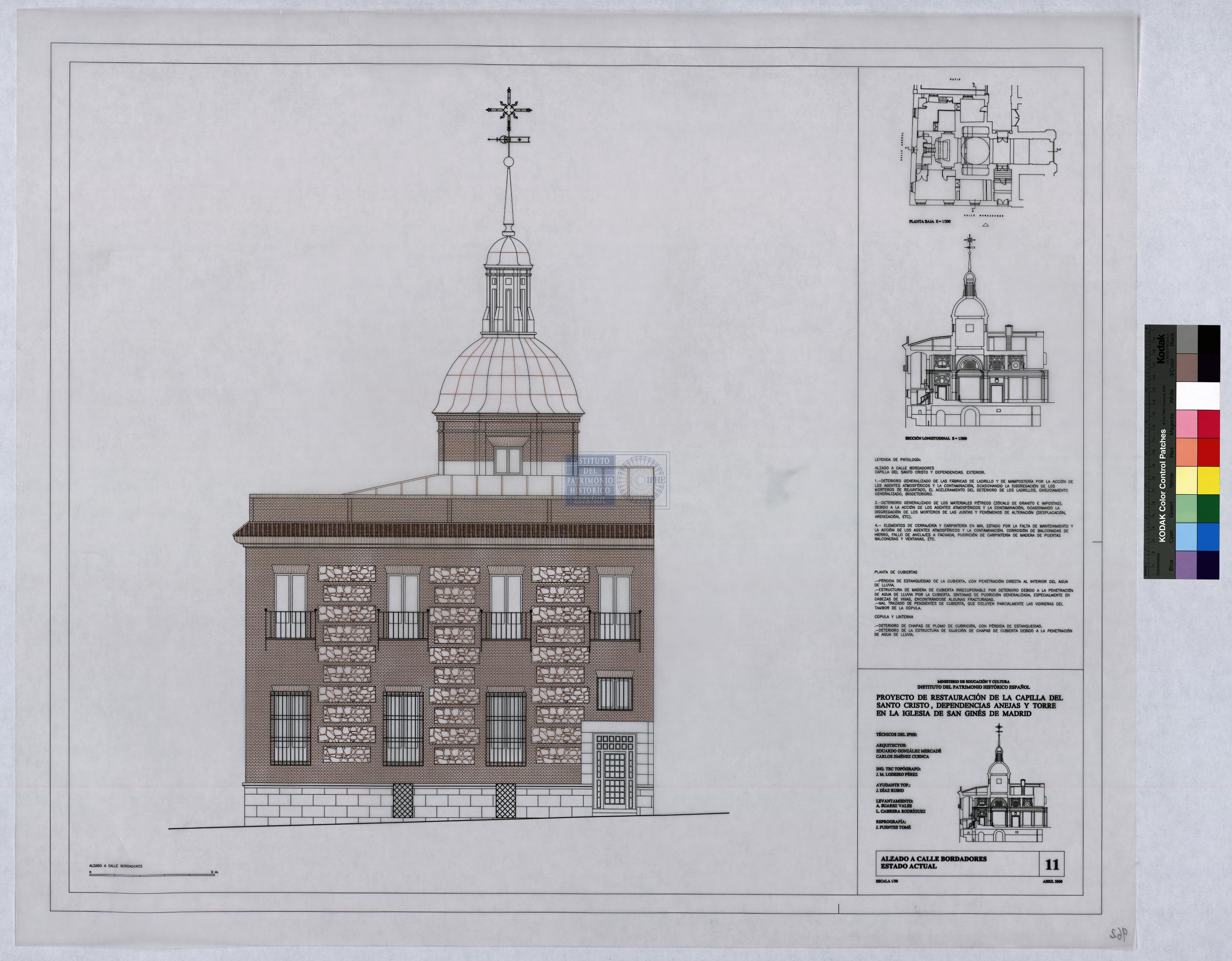 CAPILLA DEL SANTO CRISTO. DEPENDENCIAS ANEJAS Y TORRE. IGLESIA DE SAN GINES: ALZADO A PATIO DE ACCESO. ESTADO ACTUAL