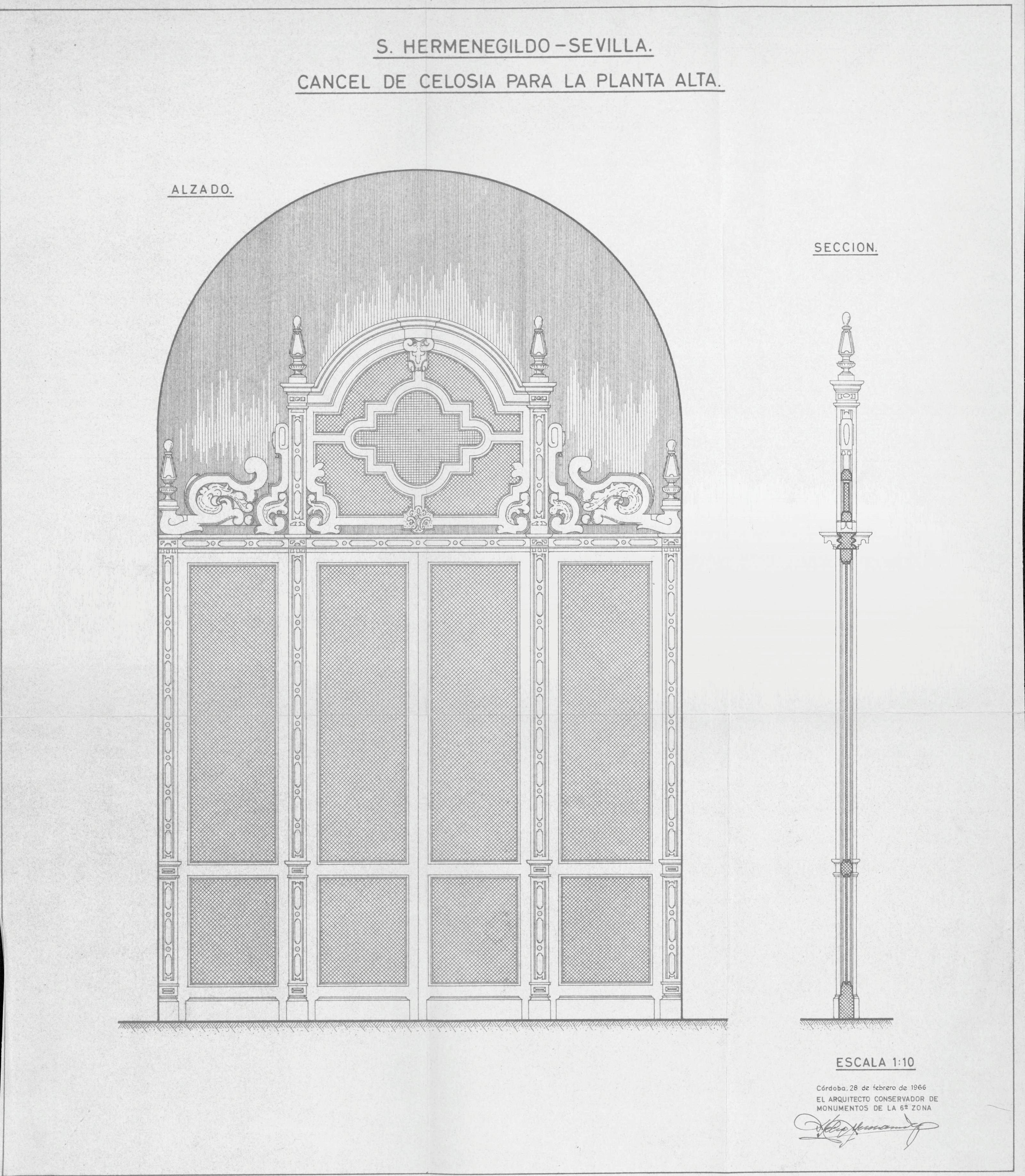 Iglesia del Colegio de San Hermenegildo: Iglesia del Colegio de San Hermenegildo Cancela de celosia para la planta alta y alzado