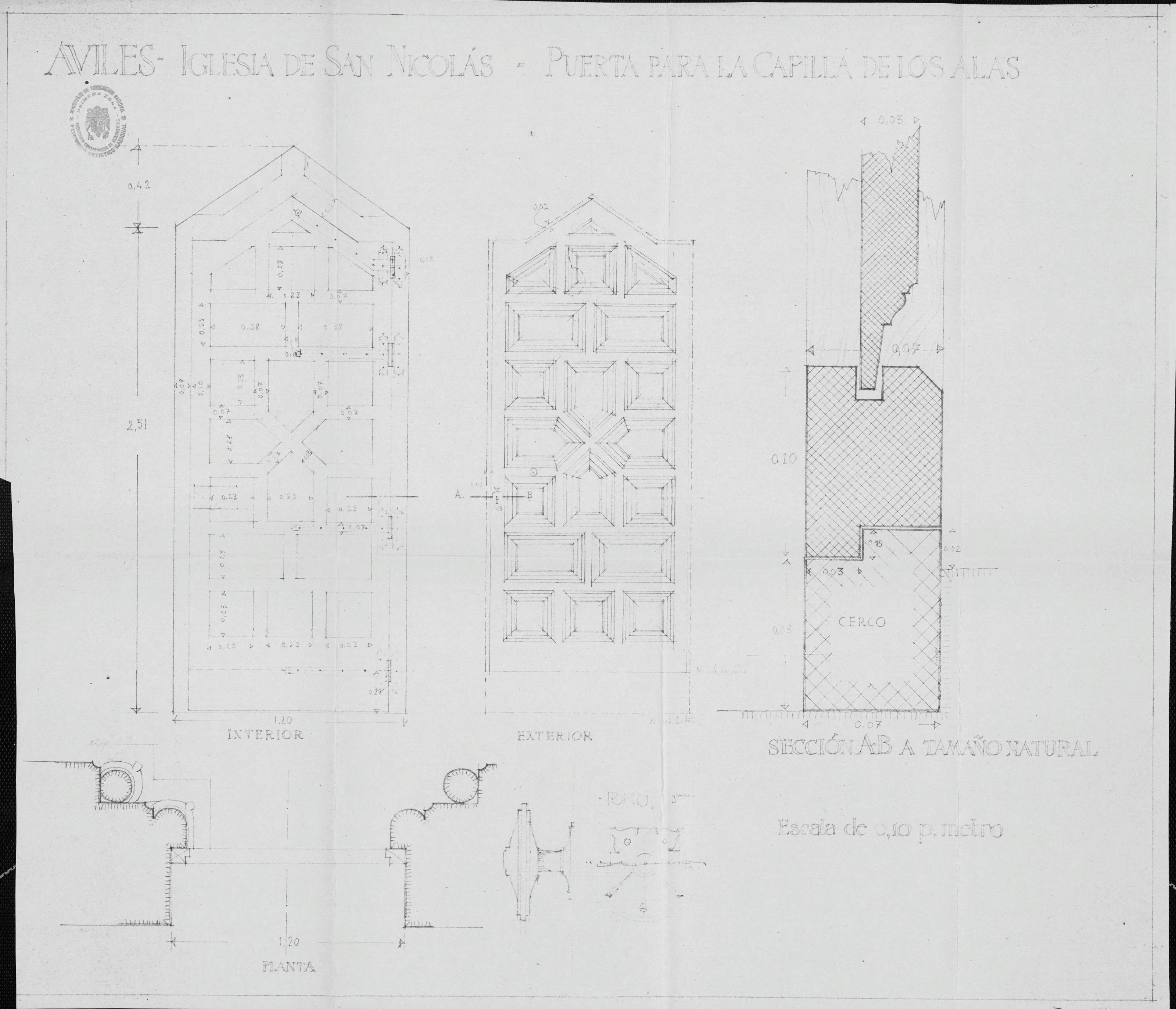 Avilés -Iglesia de San Nicolas- Puerta para la Capilla de Dos Alas- Oviedo-: Planta Alzado Interior Alzado Exterior Sección