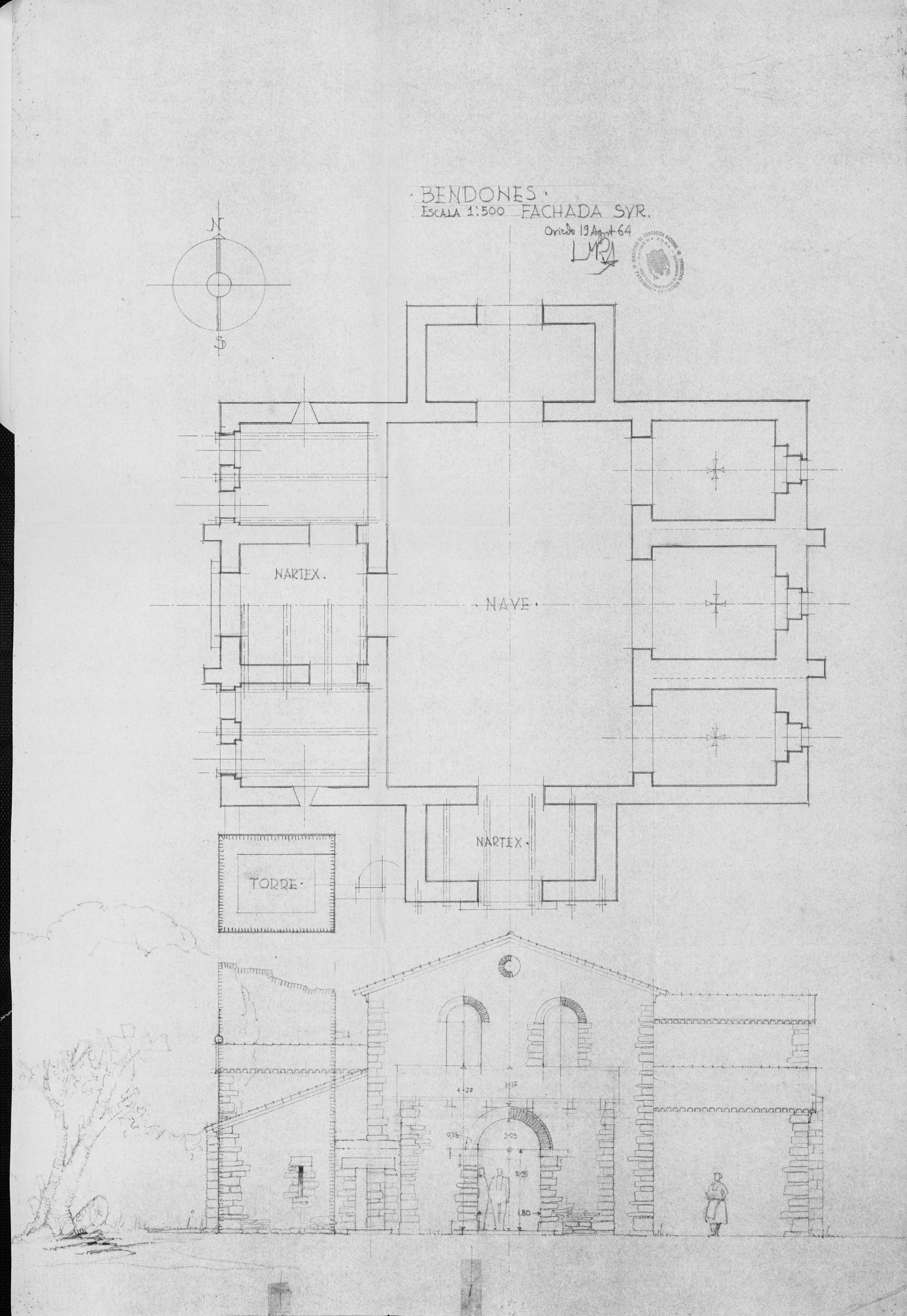 Santa Maria de Bendones -Oviedo-: Planta.Alzado Sur.