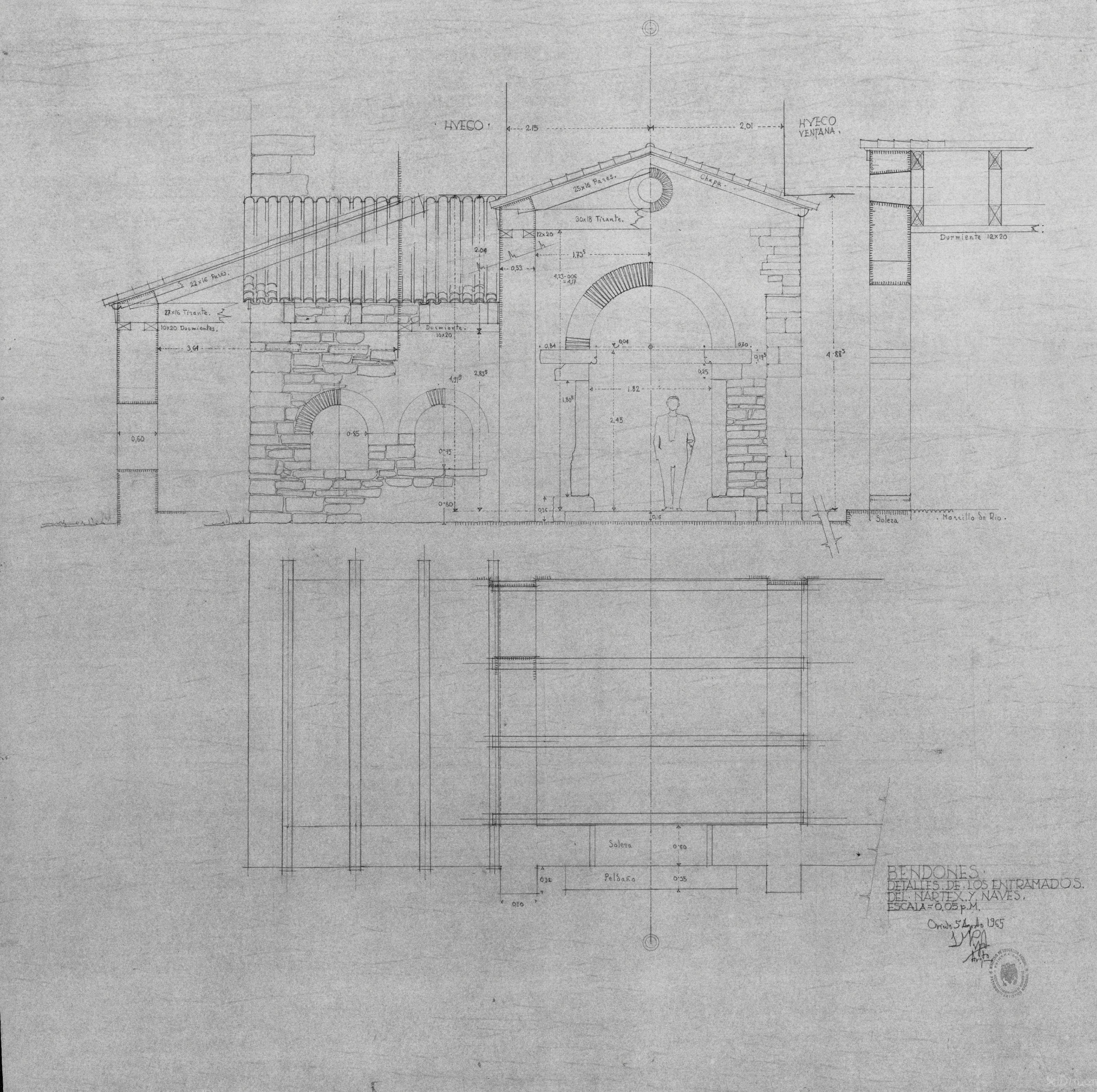 Santa Maria de Bendones -Oviedo- -Detalles de los Entramados del Nartes y Naves-: Planta Alzado Detalle