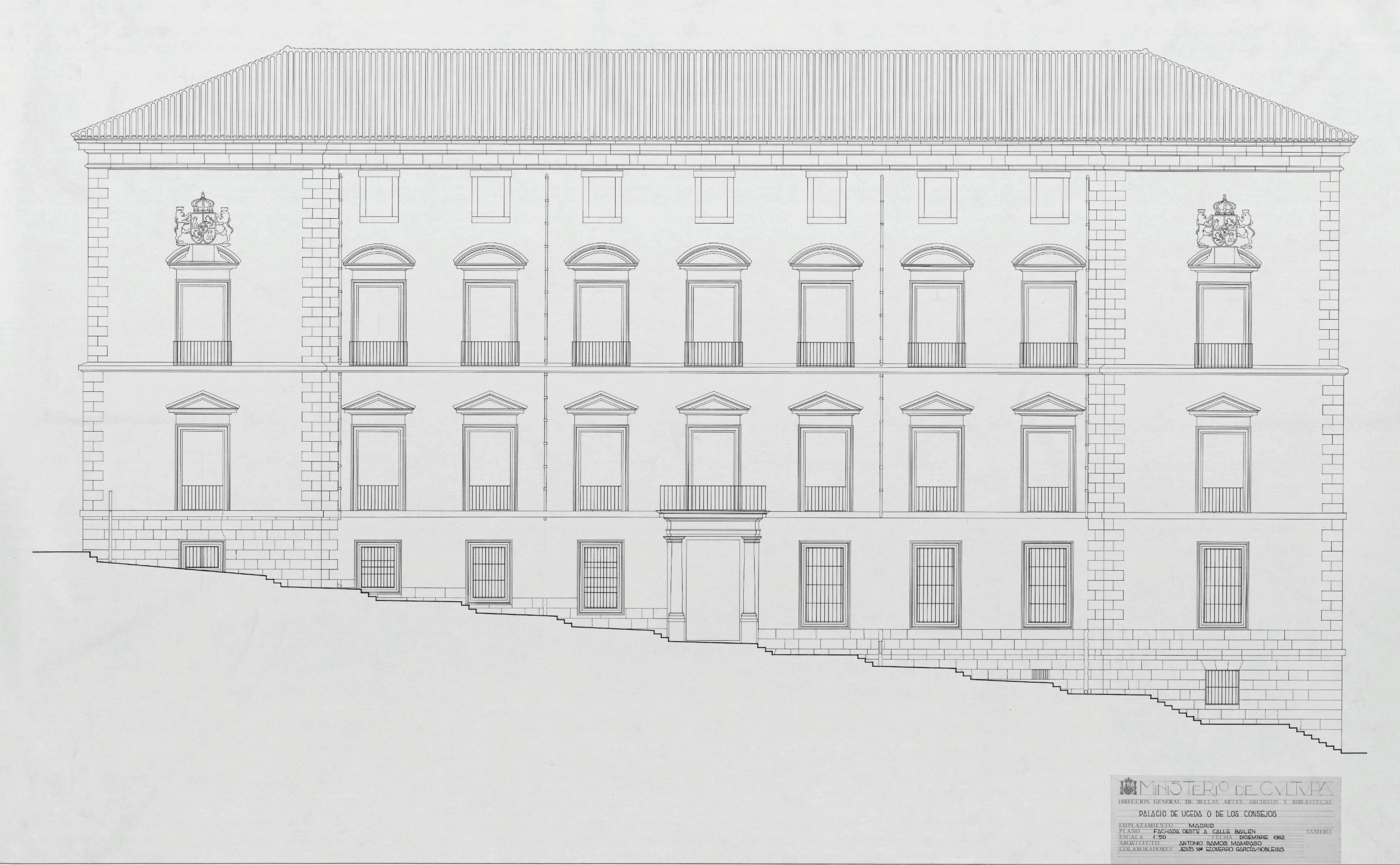 PALACIO DE UCEDA O DE LOS CONSEJOS: FACHADA OESTE A CALLE BAILÉN