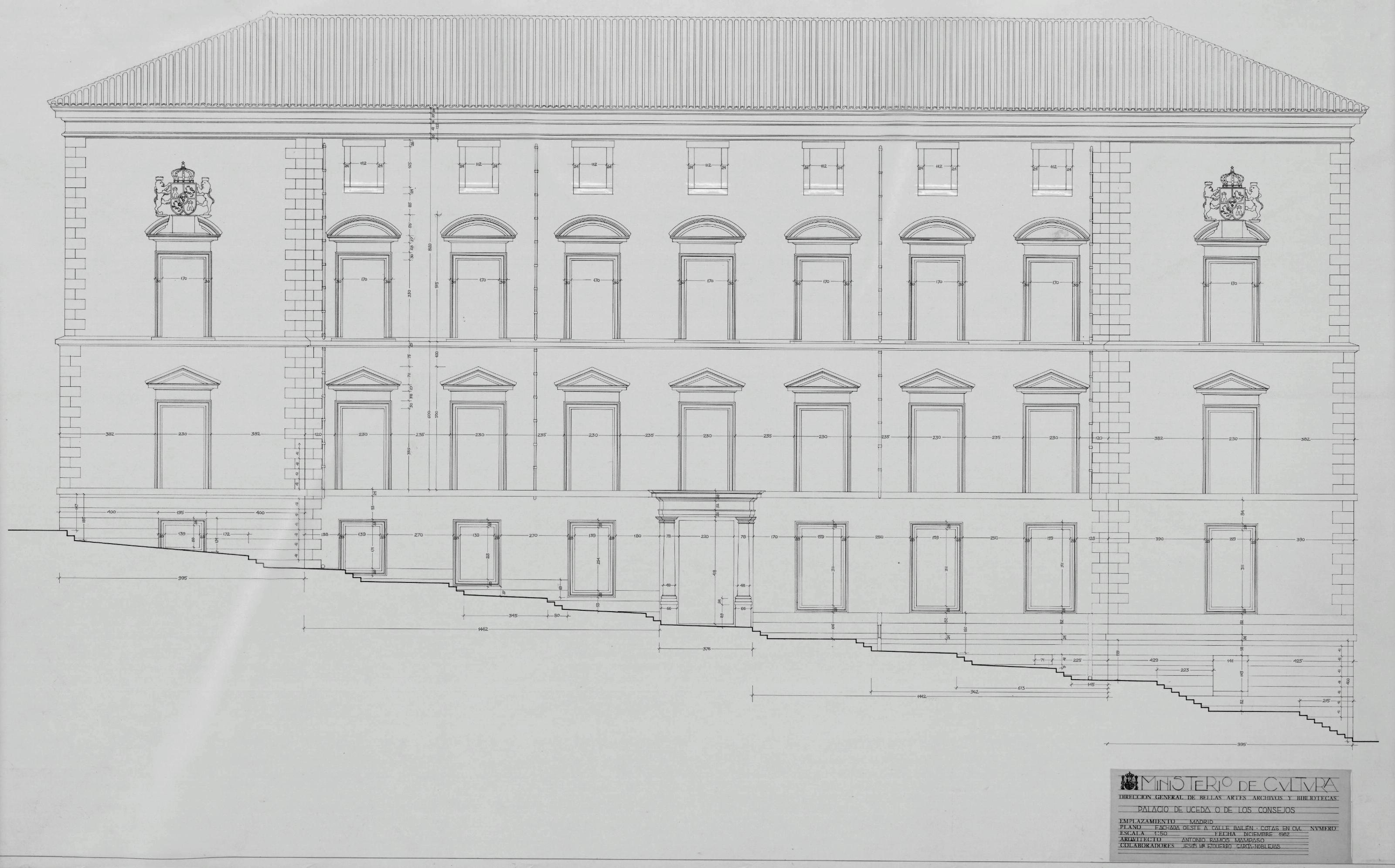 PALACIO DE UCEDA O DE LOS CONSEJOS: FACHADA OESTE A CALLE BAILÉN - COTAS