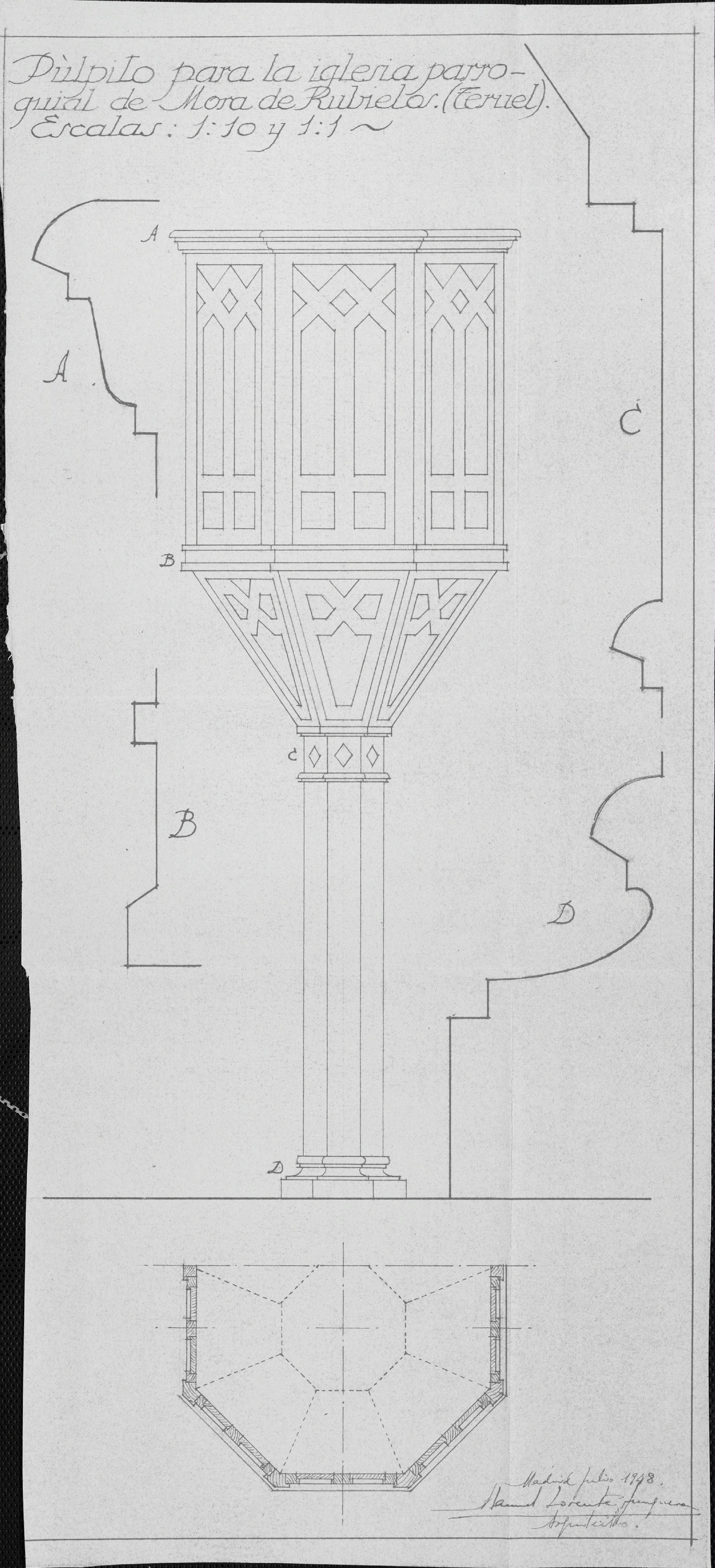 Pulpito para la Iglesia Parroquial de Mora de Rubielos (Teruel): Planta Alzado