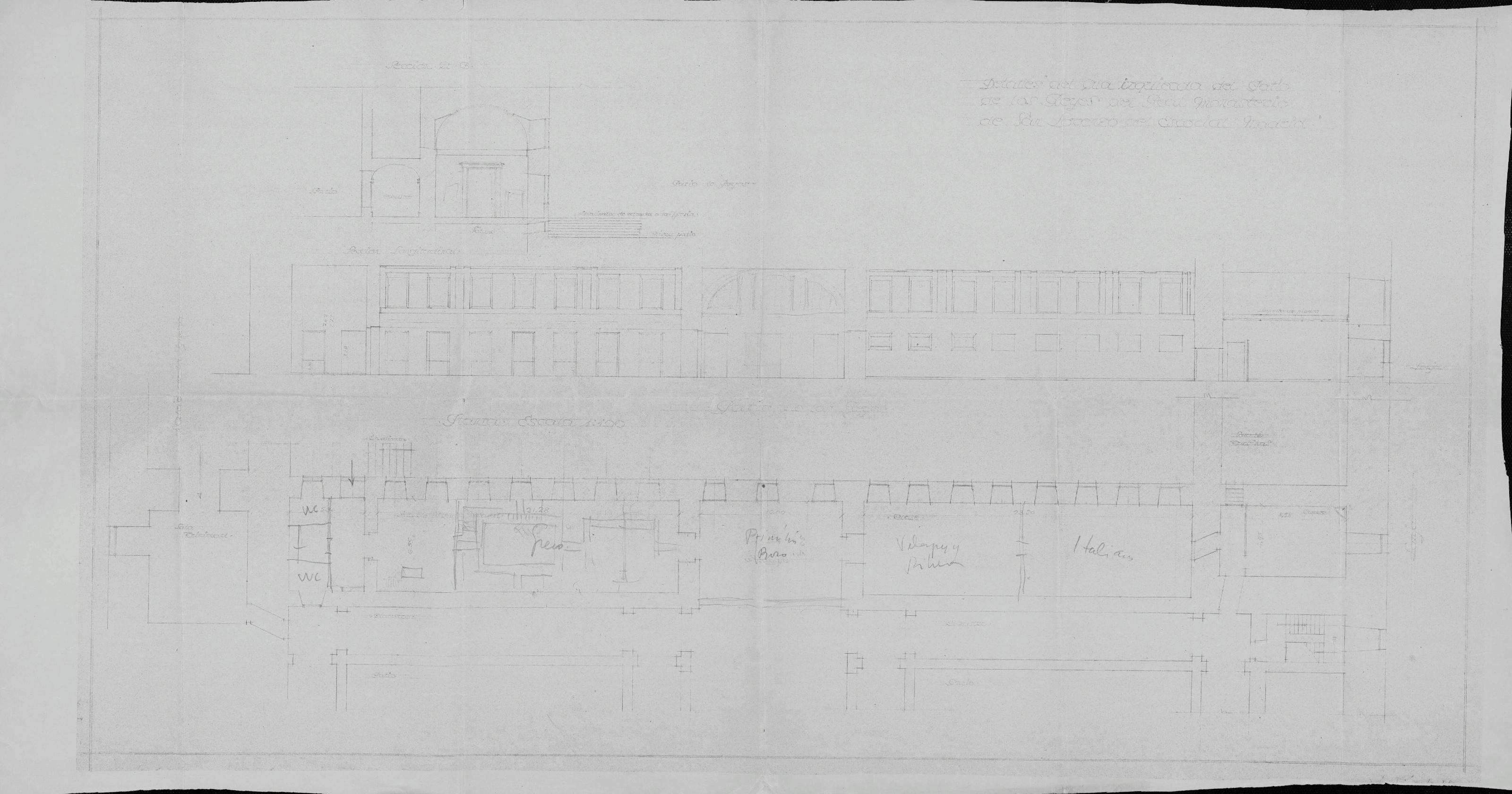 Monasterio de San Lorenzo del Escorial: San Lorenzo del Escorial Detalles del Ala Izquierda del Patio de los Reyes, Secciones y planta
