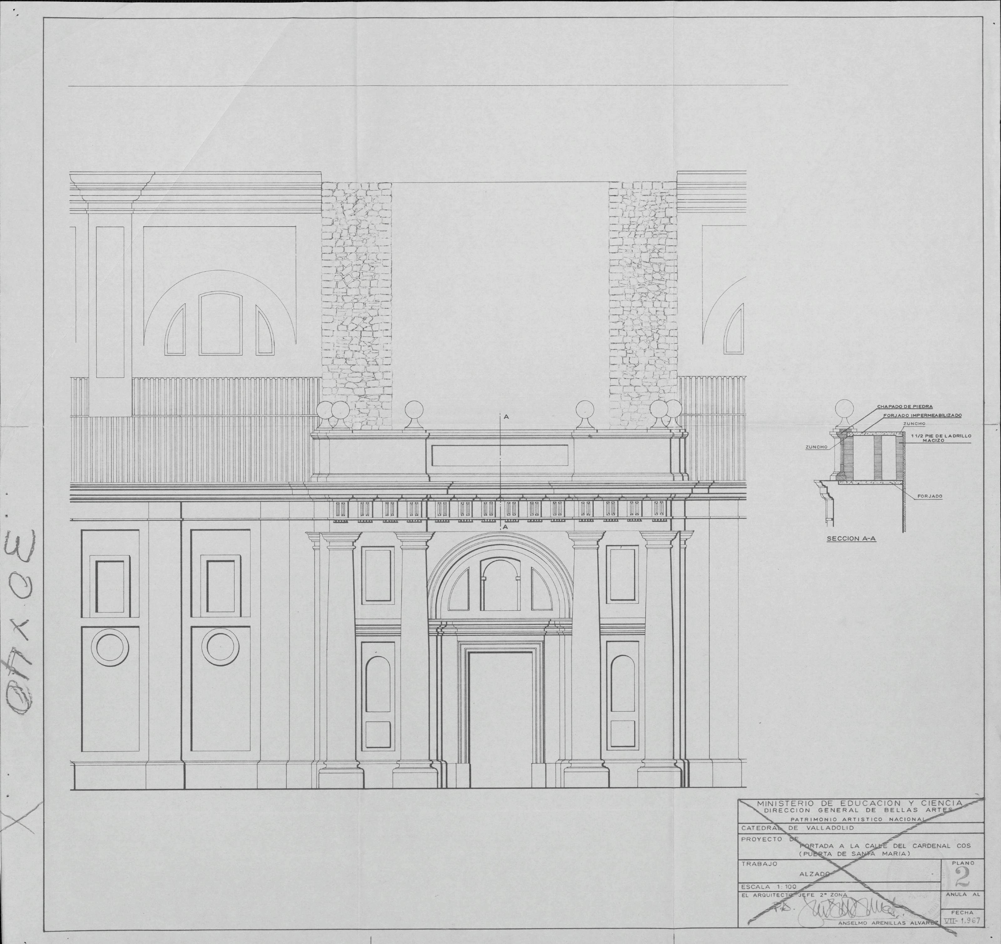 CATEDRAL DE VALLADOLID: PORTADA A LA CALLE DEL CARDENAL COS (PUERTA DE SANTA MARIA) ALZADO