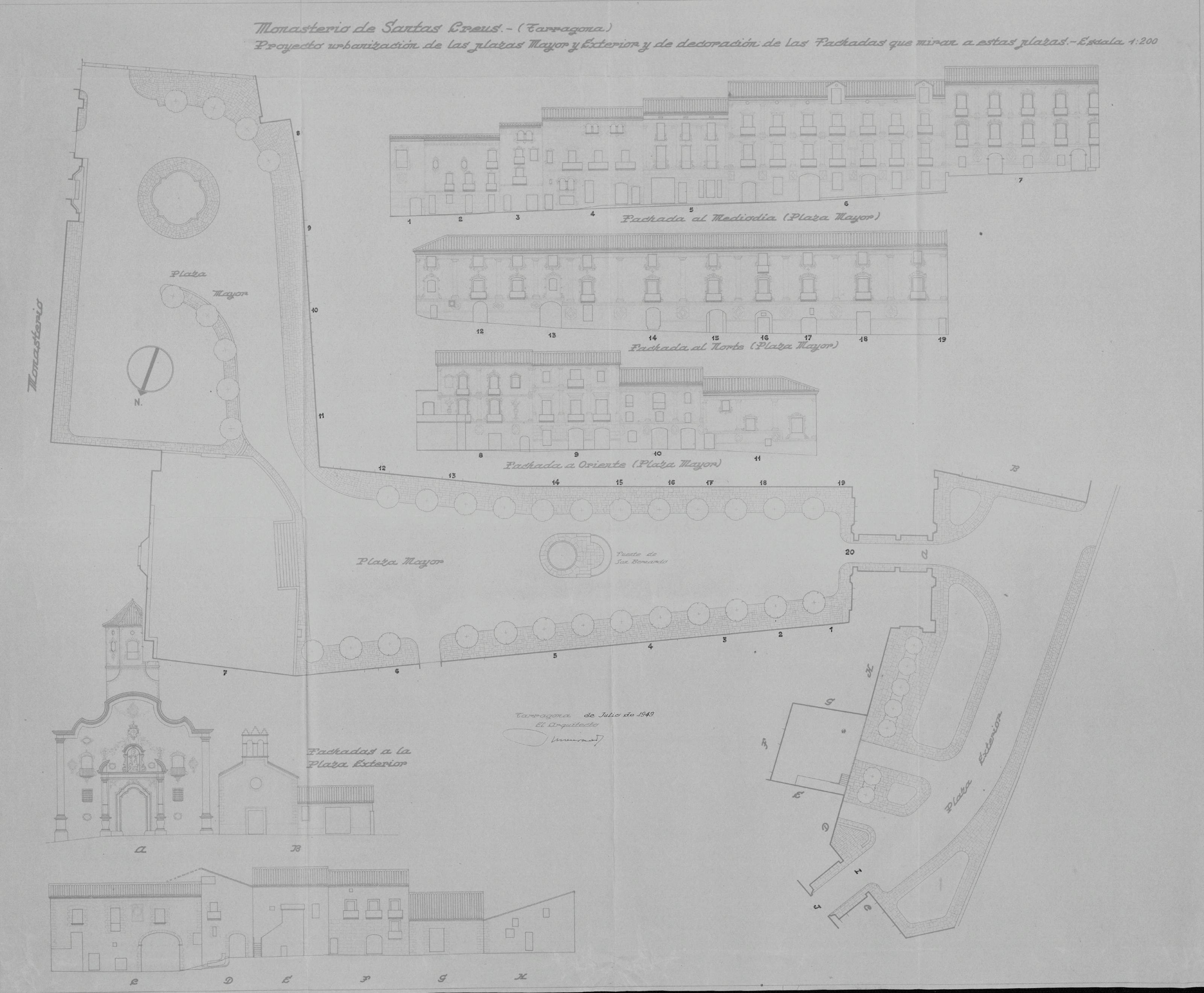 MONASTERIO DE SANTAS CREUS: UBANIZACION DE LAS PLAZAS MAYOR Y EXTERIOR Y DECORACION DE LAS FACHADAS QUE MIRAN A ESTAS PLAZAS,