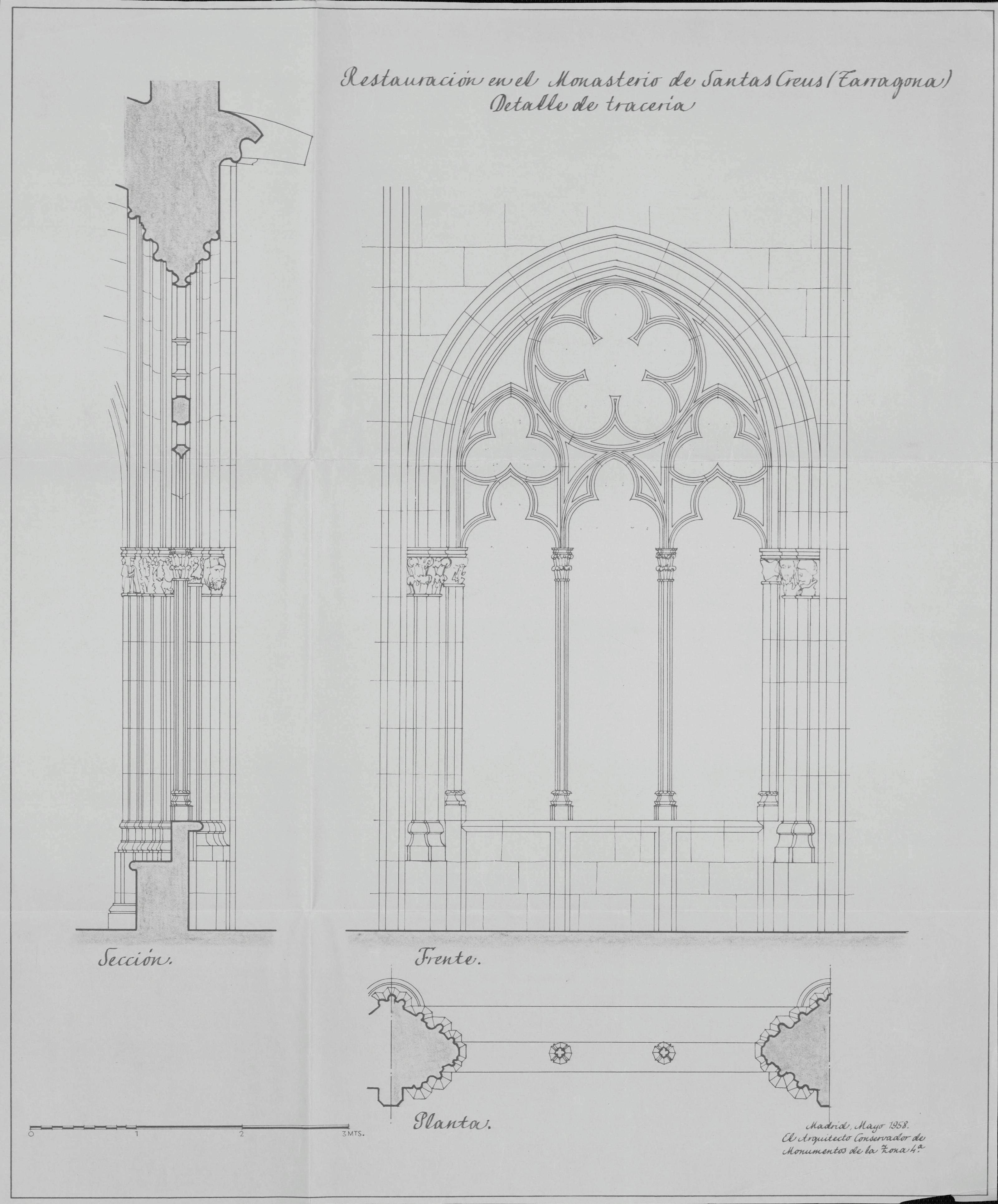 MONASTERIO DE SANTAS CREUS: DETALLE DE TRACERIA (PLANTA, FRENTE Y SECCION)