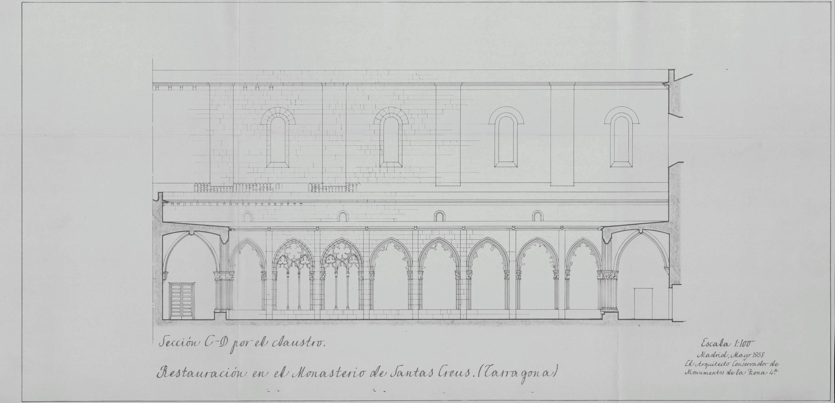 MONASTERIO DE SANTAS CREUS: SECCION C-D POR EL CLAUSTRO