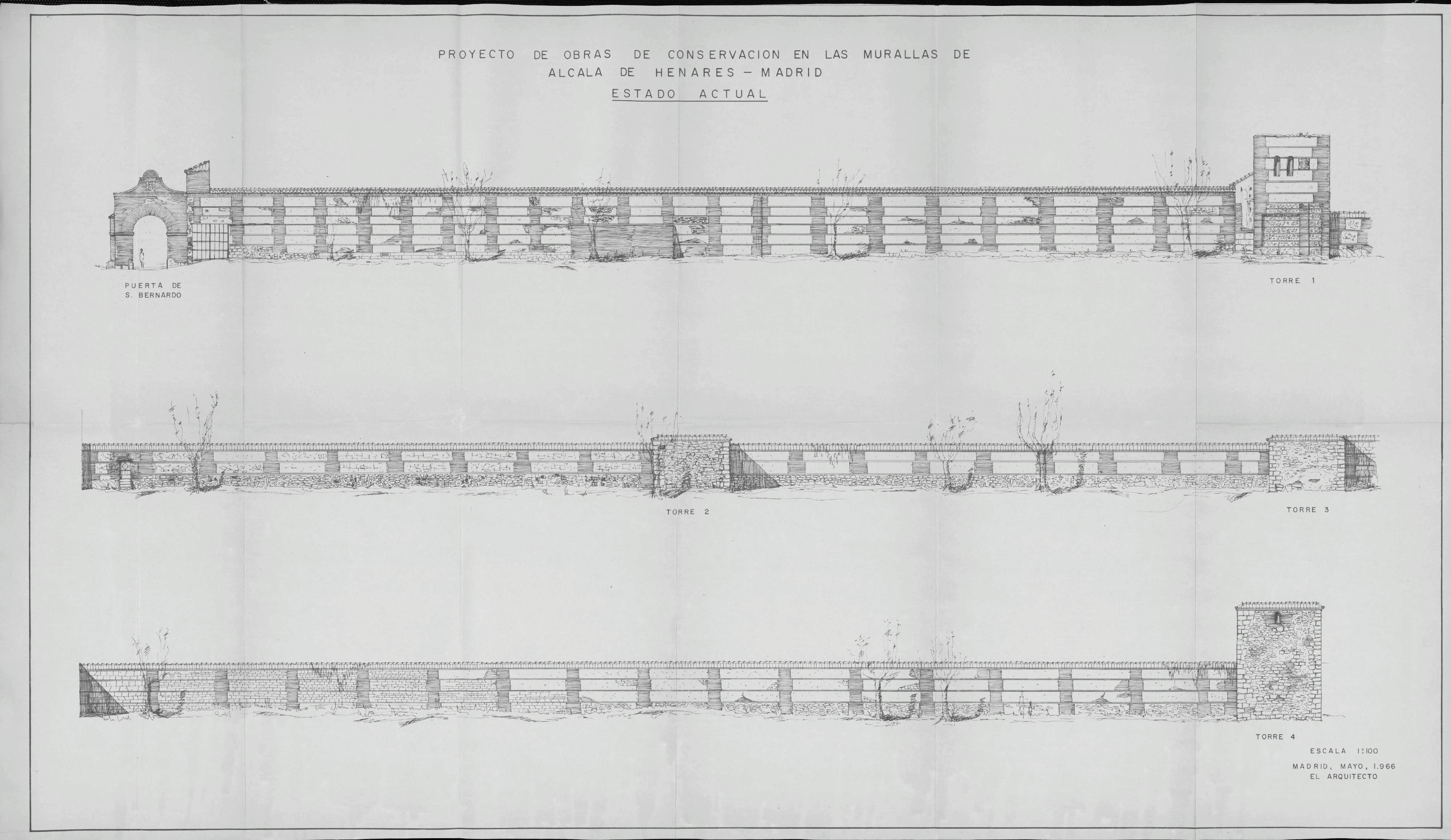 Murallas de Alcalá de Henares: Proyecto de restauración de las murallas de Alcalá Alzados - Estado Actual De la Puerta de San Bernardo a la Torre 4