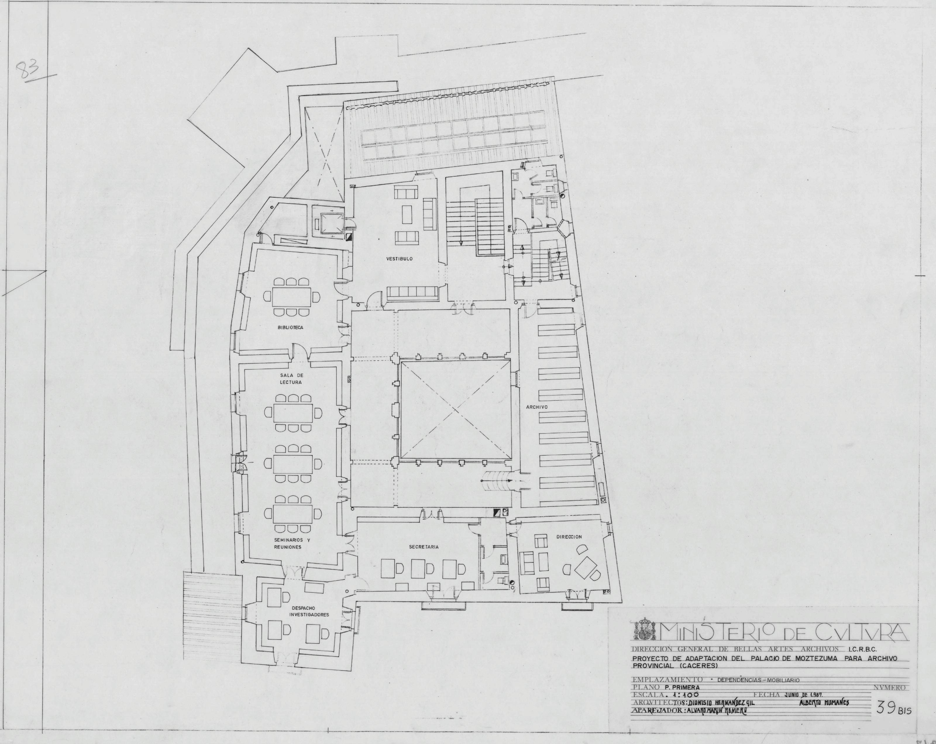 PALACIO DE MOCTEZUMA. ARCHIVO HISTORICO PROVINCIAL: PLANTA PRIMERA. DEPENDENCIAS - MOBILIARIO