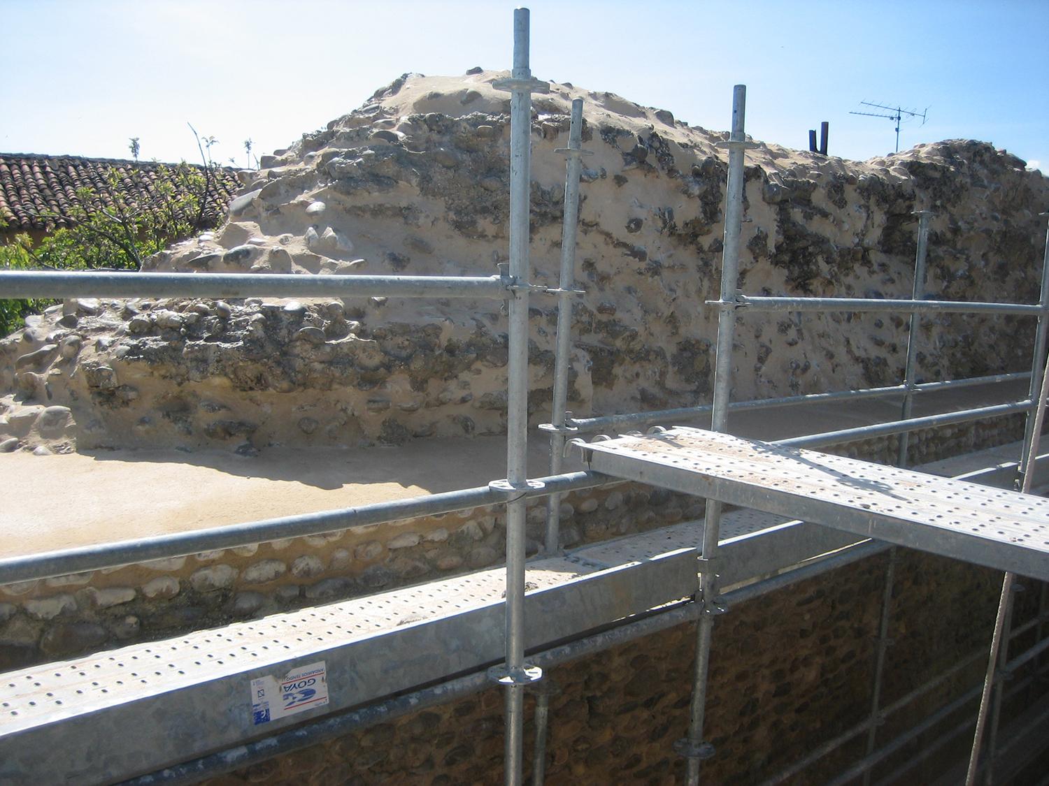 Obras de emergencia en la Puerta de Santiago de las murallas de Mansilla de las Mulas (León)
