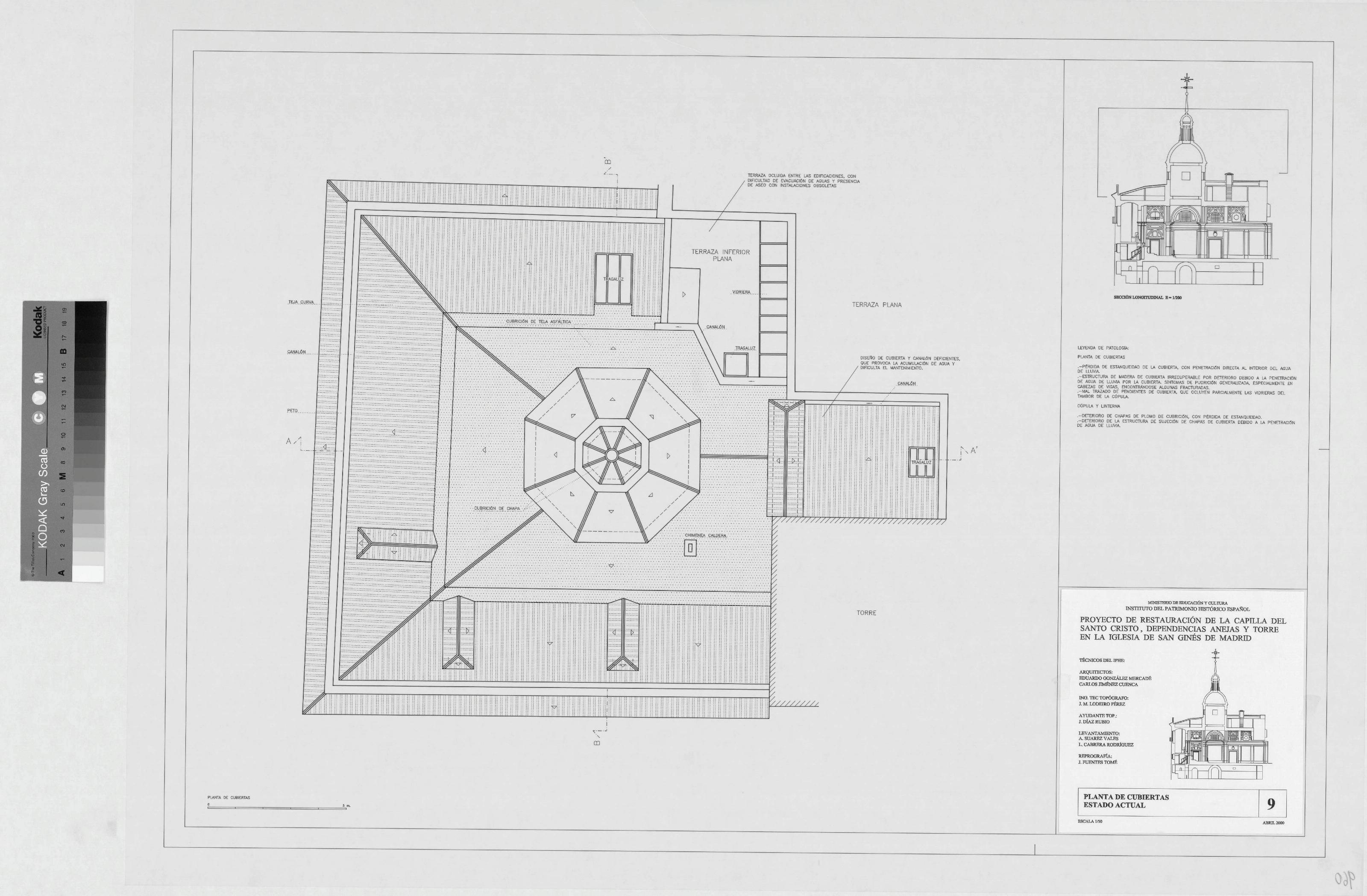 CAPILLA DEL SANTO CRISTO. DEPENDENCIAS ANEJAS Y TORRE. IGLESIA DE SAN GINES: PLANTA DE CUBIERTAS. ESTADO ACTUAL