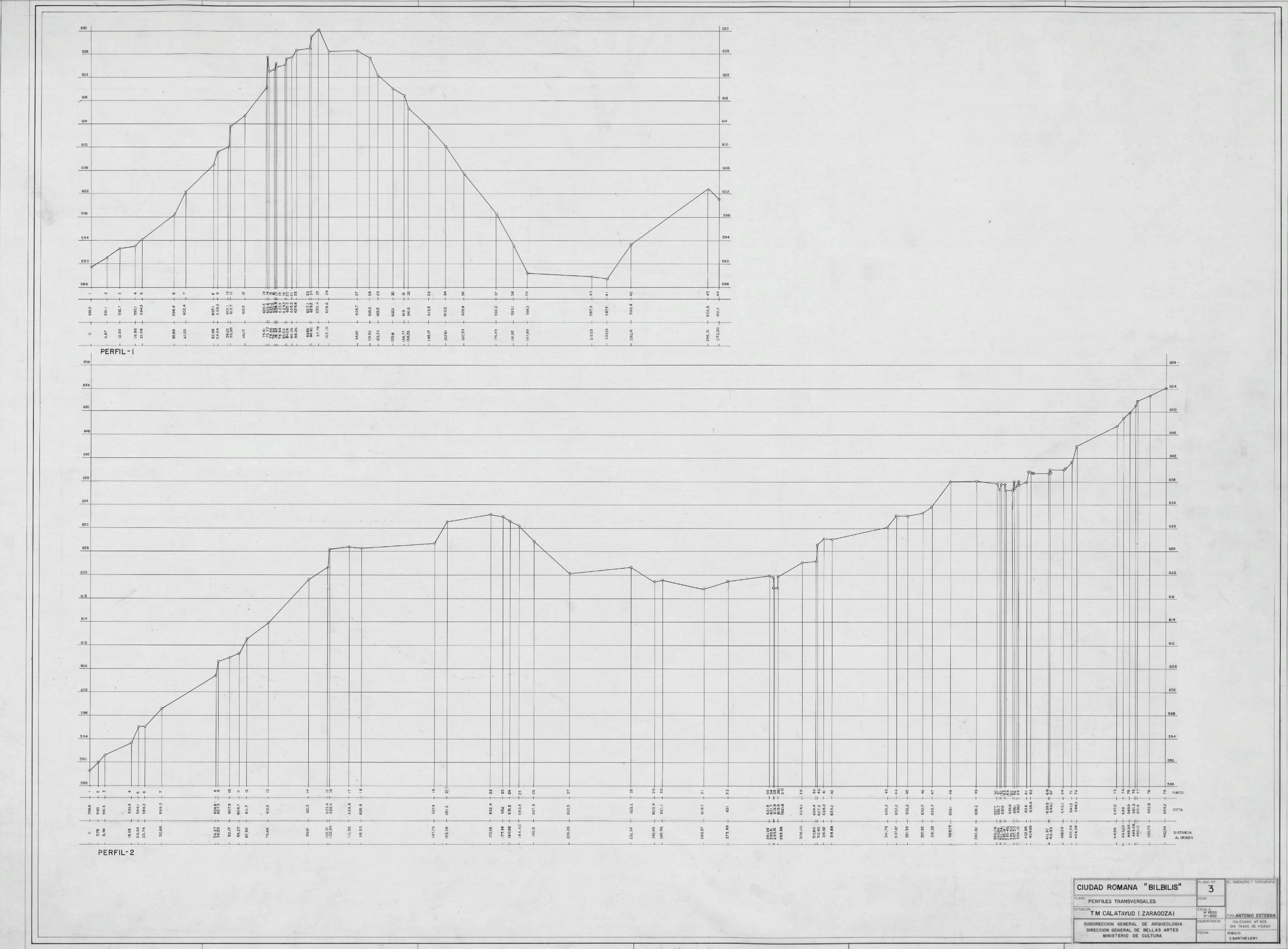 CIUDAD ROMANA BILBILIS. (HMTN 409): PERFILIS TRANSVERSALES DEL TERRENO.
