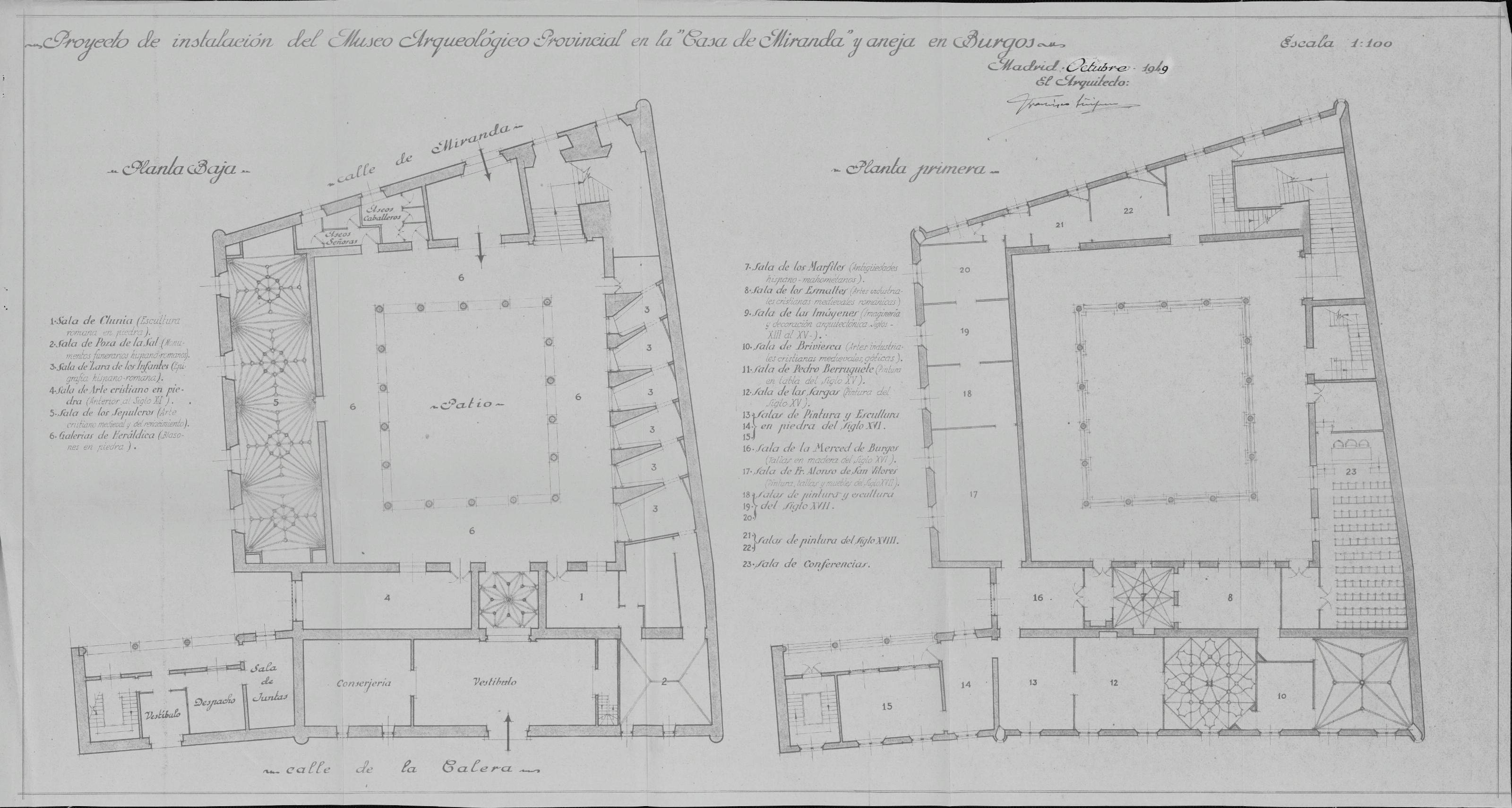 Casa Miranda de Burgos (Museo de Burgos). Burgos.: Proyecto de instalación del Museo Arqueológico Provincial. Plantas baja y primera.