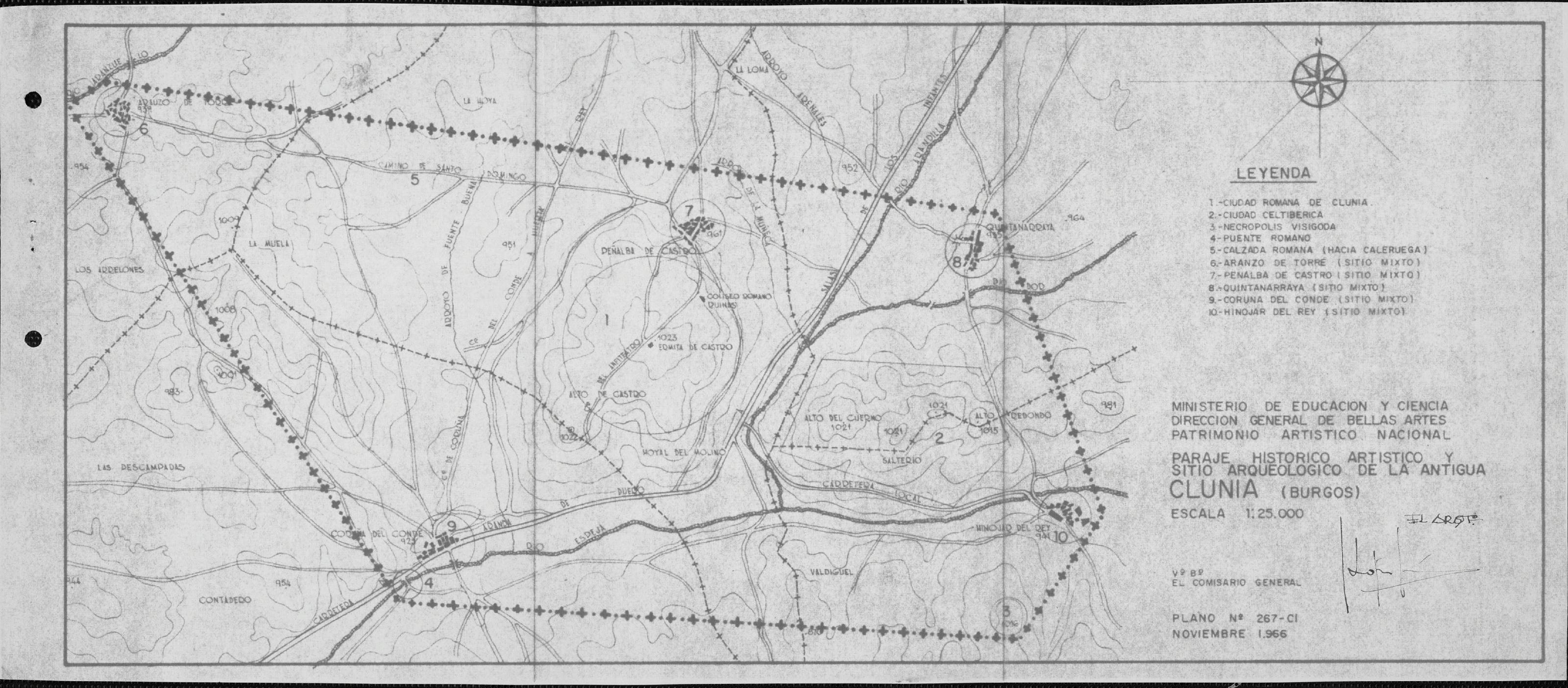 Ruinas Romanas de Clunia. Huerta del Rey. Burgos.: Plano topográfico de la zona. Situación de las Ruinas.