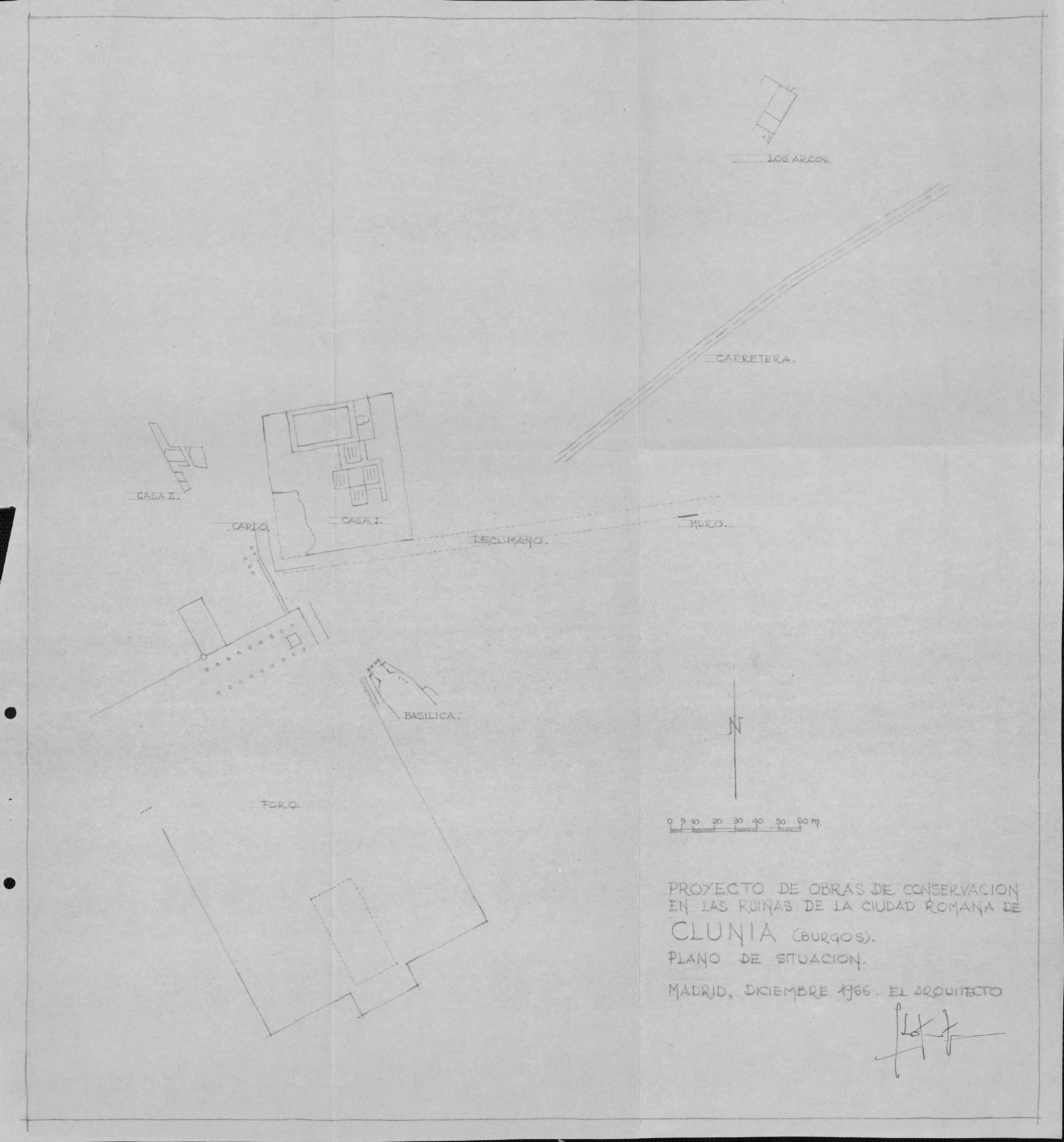 Ruinas Romanas de Clunia. Huerta del Rey. Burgos.: Proyecto de obras de conservación. Plano de situación de las Ruinas.