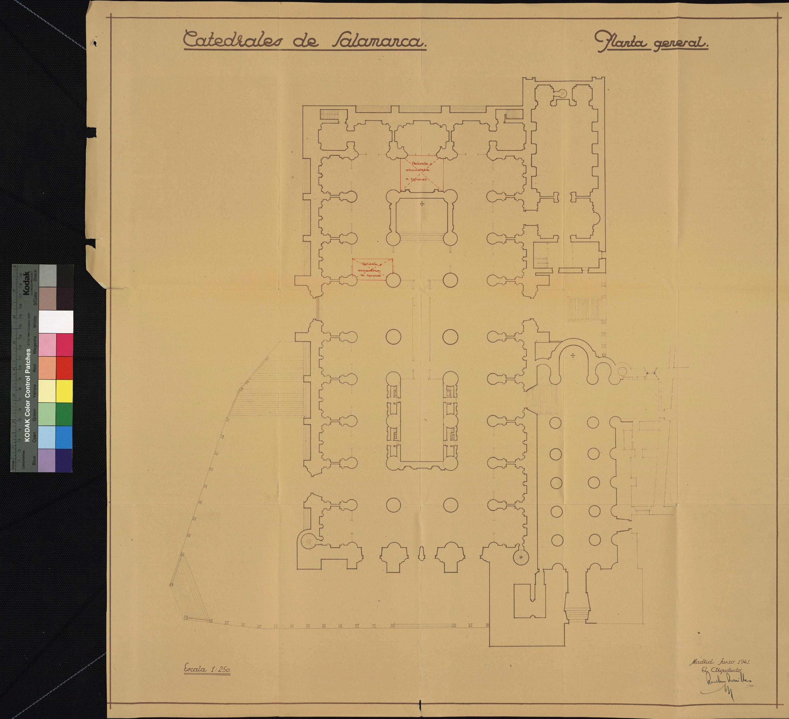 Catedral Nueva de la Asunción de la Virgen. Salamanca.: Planta general sobre la que se ha coloreado actuaciones.