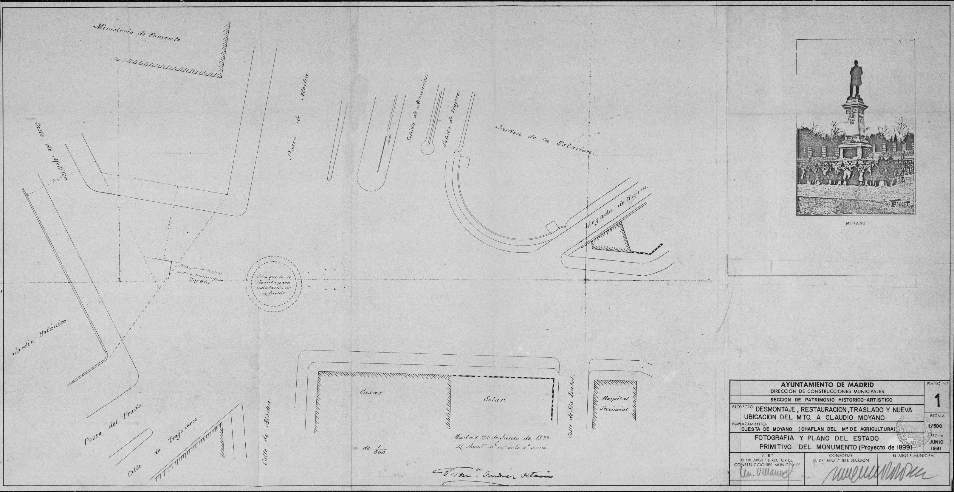 Estatua de Claudio Moyano: Grupo escultórico dedicado a Claudo Moyano Situación Primitiva del mismo