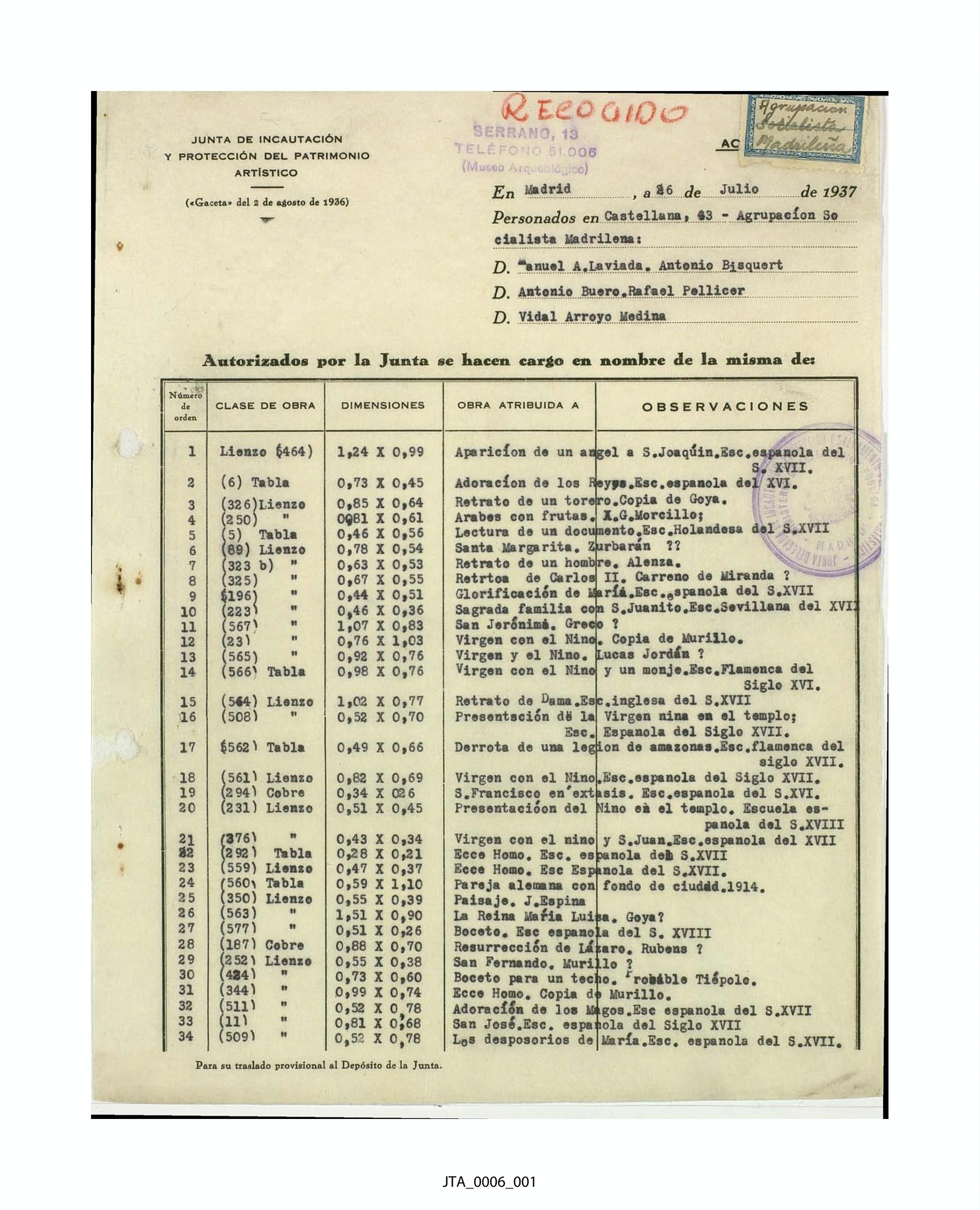 Junta de Incautación del Tesoro Artístico de Madrid / Productor