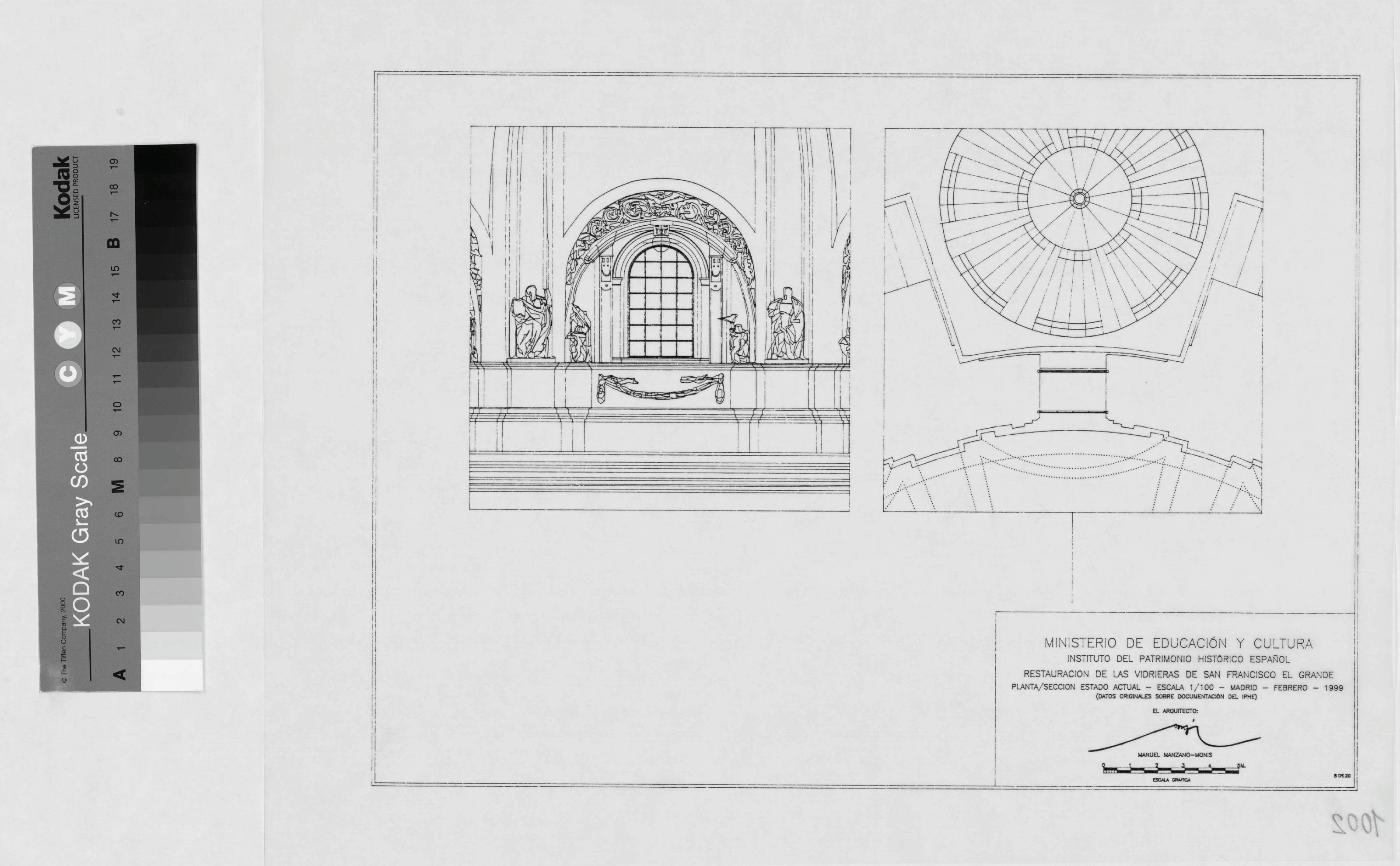 VIDRIERAS. IGLESIA DE SAN FRANCISCO EL GRANDE: PLANTA SECCION. ESTADO ACTUAL