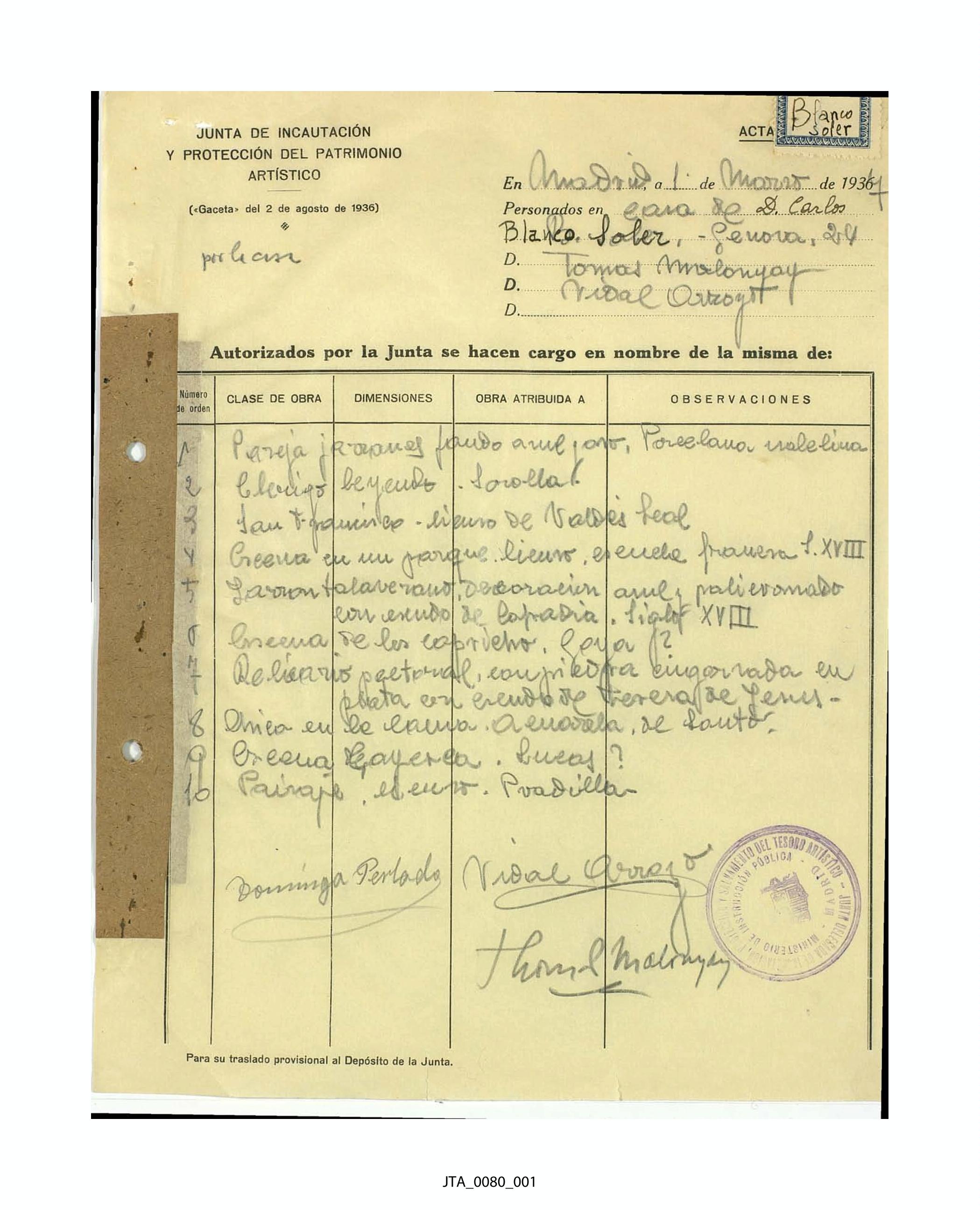 Acta de incautación de Carlos Blanco Soler