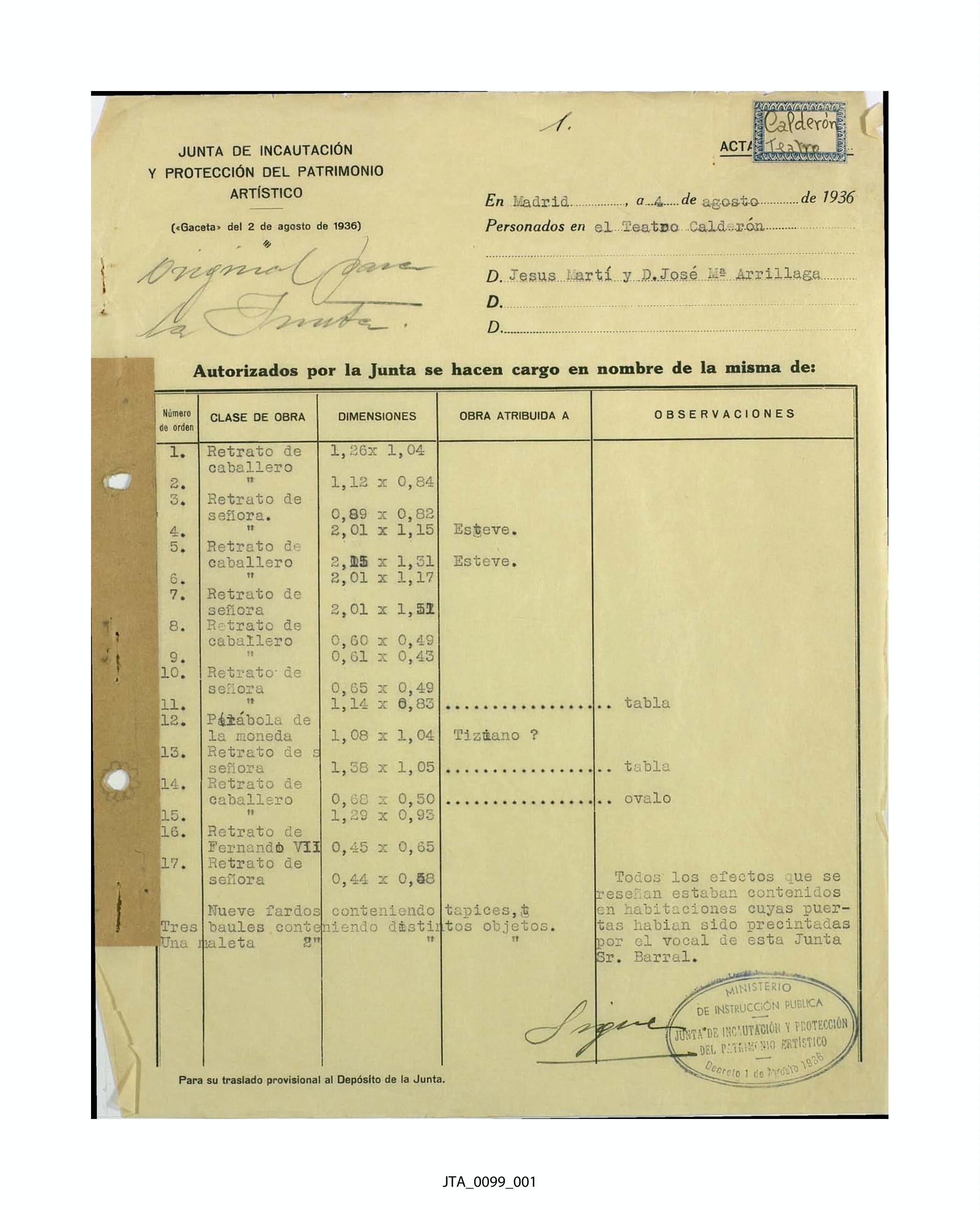 Acta de incautación del Teatro Calderón
